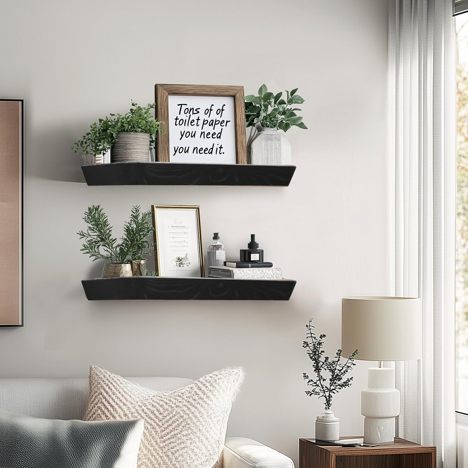 - Innovative Slanted Design: These slanted floating wall shelves feature a unique angled design, enhancing both functionality and style, perfect for showcasing dรฉcor or organizing essentials in any room