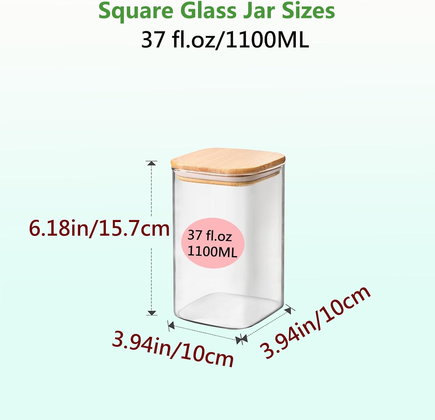 - [Product Capacity] 4 Square jars with ,3.94x6.18 inches (10cmx15.7cm) ,for flour, coffee, tea, salt, sugar and etc; Note: This glass jar is not suitable for Spaghetti