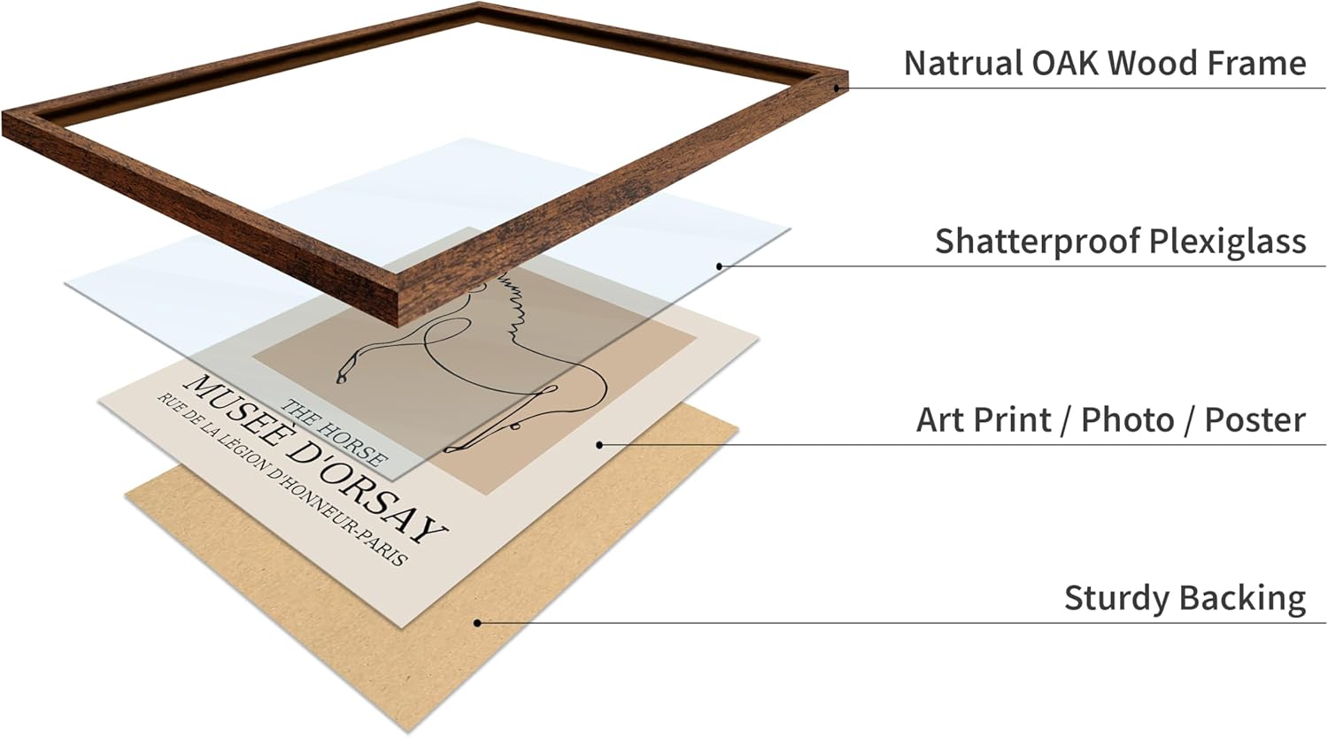 Poster Master Vintage Poster - Retro Minimalist Print - Gift for Artist, Friend - Horse, Line Drawing, Sketch, Abstract - Wall Decor for Living Room, Bedroom, 8x10 Brown Framed