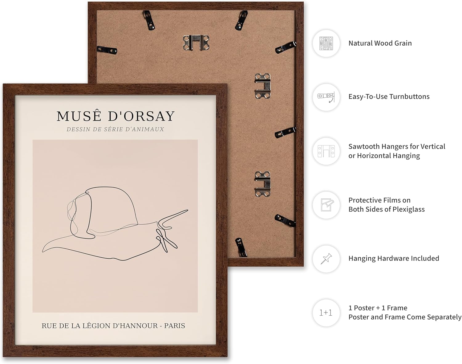 Poster Master Vintage Poster - Retro One Line Snail Drawing Print - Snail Line Art - Minimal Gift for Men, Women, Animal Lover - Abstract Wall Decor for Home, Office, 11x14 Brown Framed
