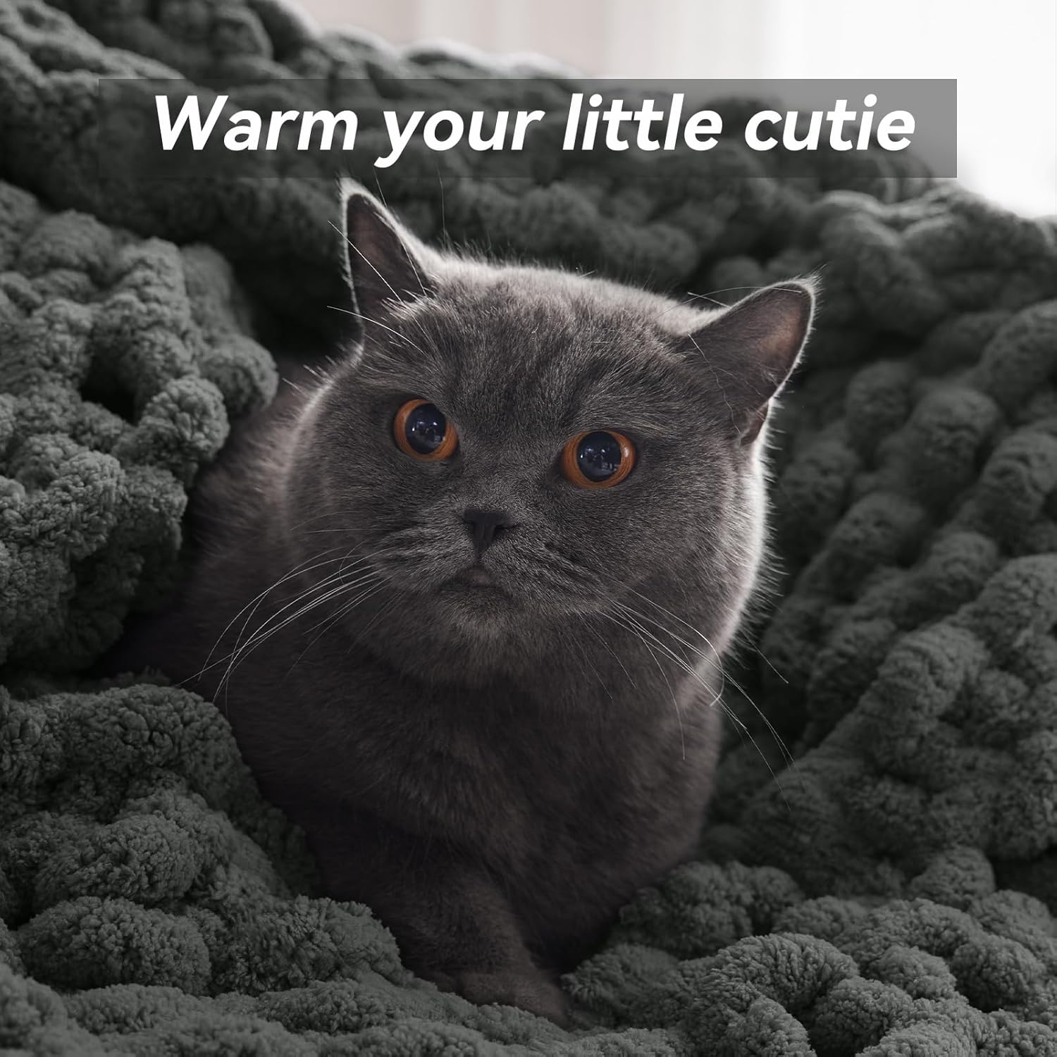 Chunky Knit Throw Blanket, 40''*50'' Knitted Throw Chenille Yarn for Bed Couch, Handmade Dark Grey Crochet Big Thick Blanket, Machine Washable Cute Comfy Blanket for Home Decor