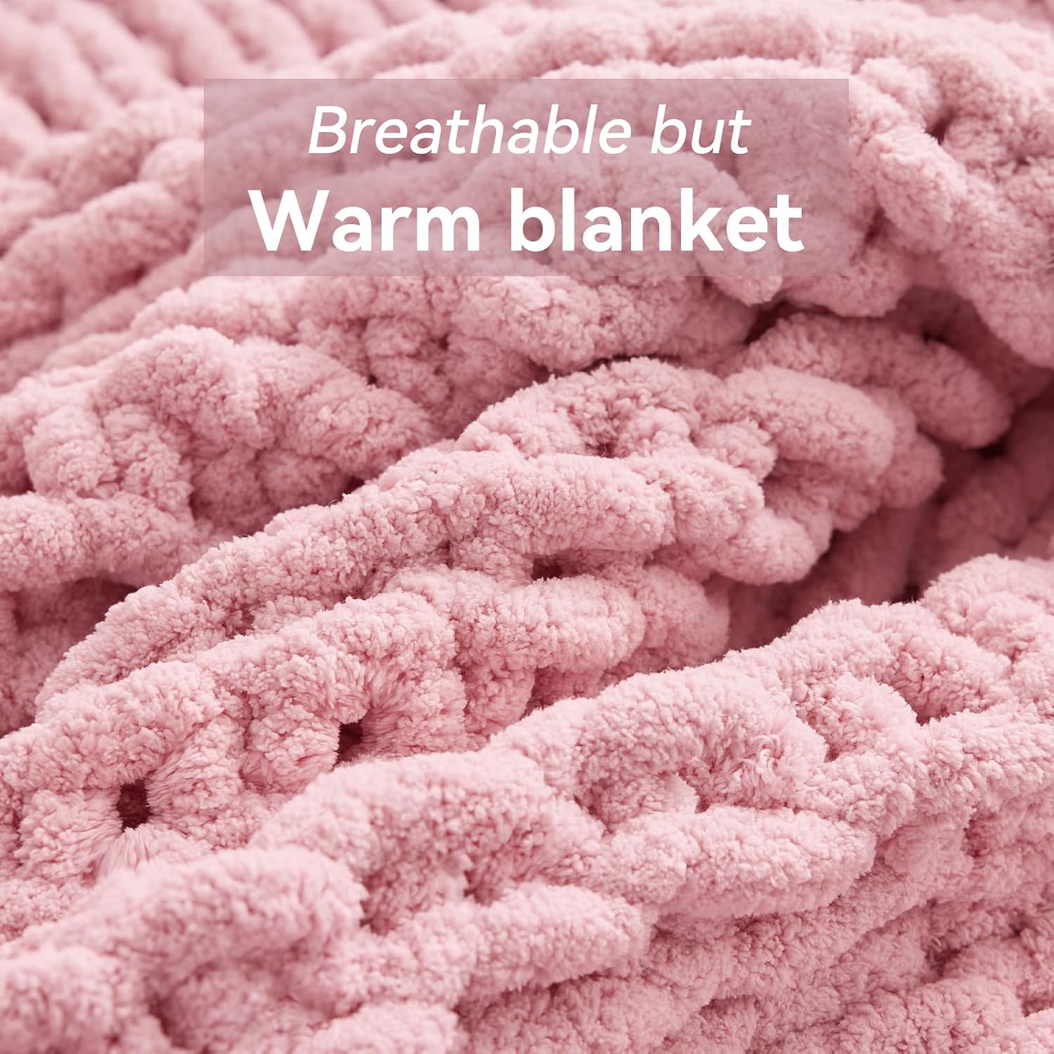 Chunky Knit Throw Blanket, 30''*40'' Knitted Throw Chenille Yarn for Bed Couch, Handmade Light Pink Crochet Big Thick Blanket, Machine Washable Cute Comfy Blanket for Home Decor