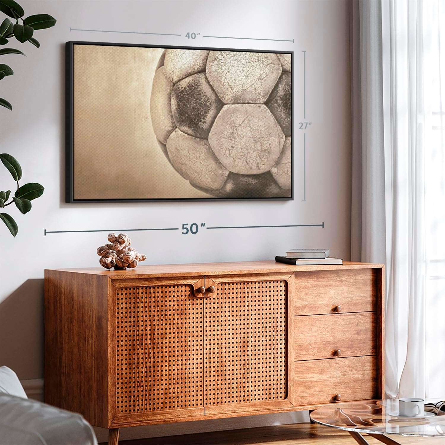 - Durable Canvas Features - Our long-lasting team sports 1-Piece canvas is made from a non-fading UV and Humidity-resistant 330 GSM Polyester Canvas. This Worn Soccer Ball canvas can be used as a modern living room wall art.