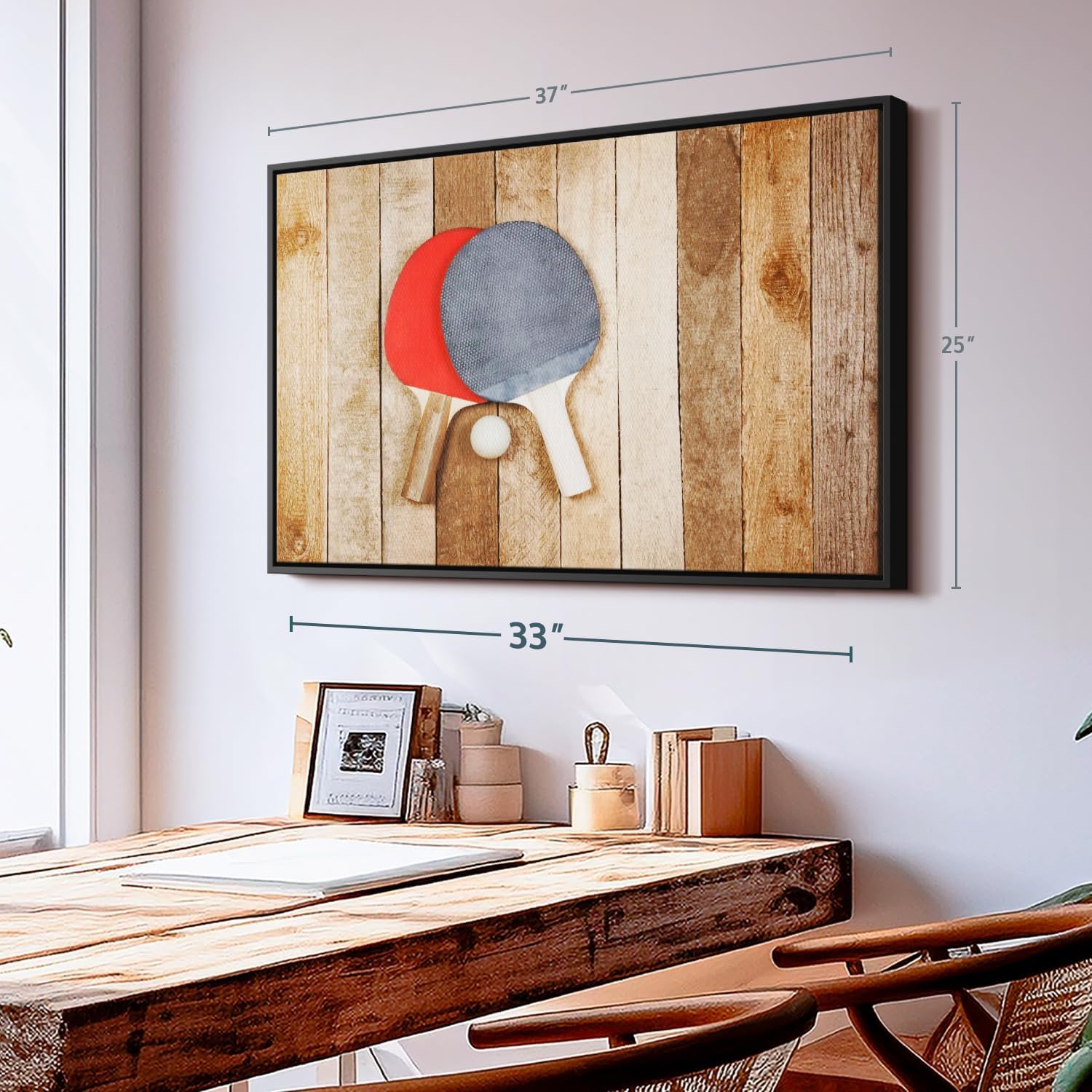 ElephantStock Ping Pong Wall Art - Horizontal Framed Canvas - 1-Piece Living Room Wall Decor - Photography Canvas Print - Brown and Red Decor for Wall - 37" X 25"