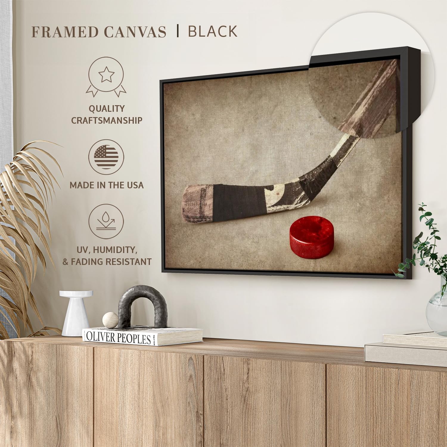 Elephant Stock Vintage Ice Hockey Wall Art - Horizontal Framed Canvas - 1-Piece Hallway Wall Decor - Photography Sports Canvas Print - Brown and Beige Decor for Wall - 25" X 17"