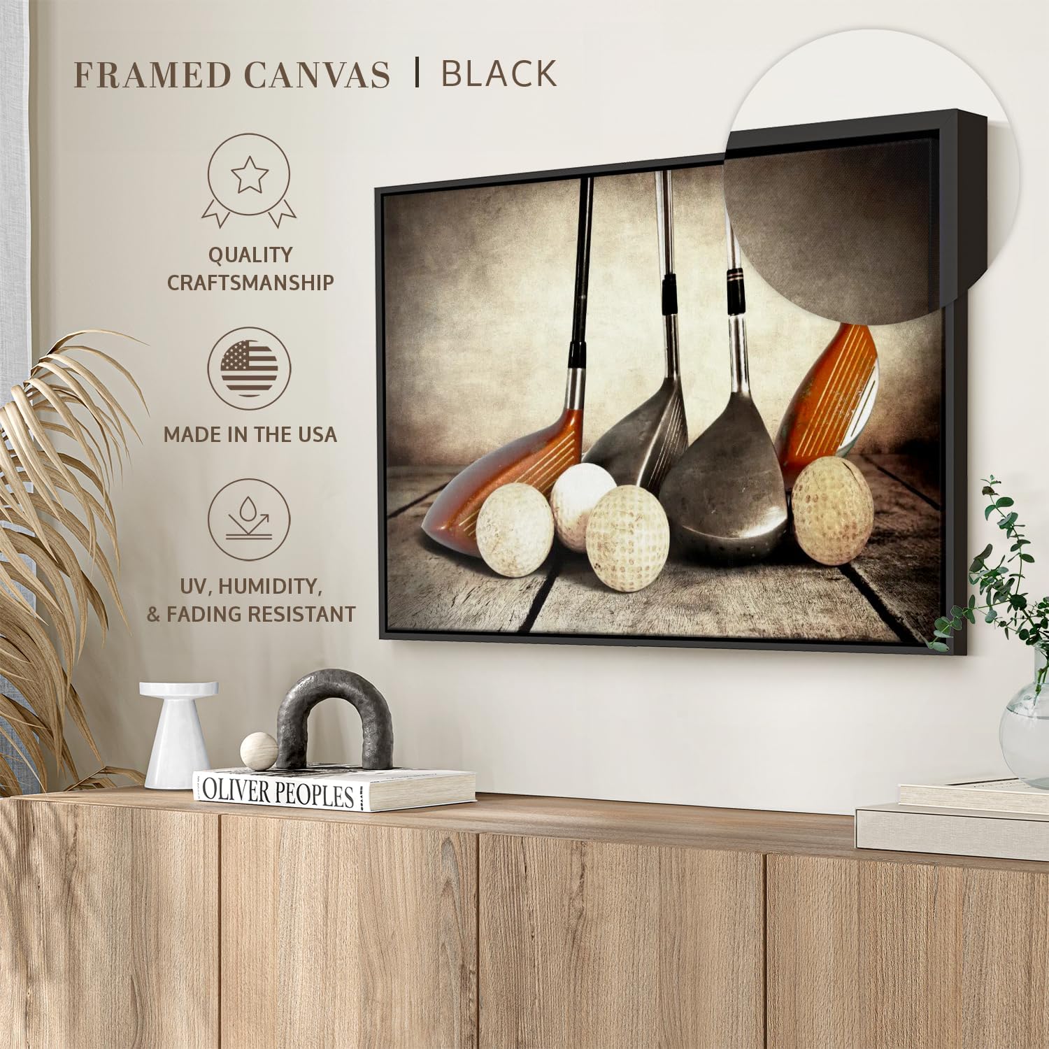 ElephantStock Golf Sets Wall Art - Horizontal Framed Canvas - 1-Piece Mancave Wall Decor - Photography Sports Canvas Print - Yellow and Brown Decor for Wall - 13" X 9"