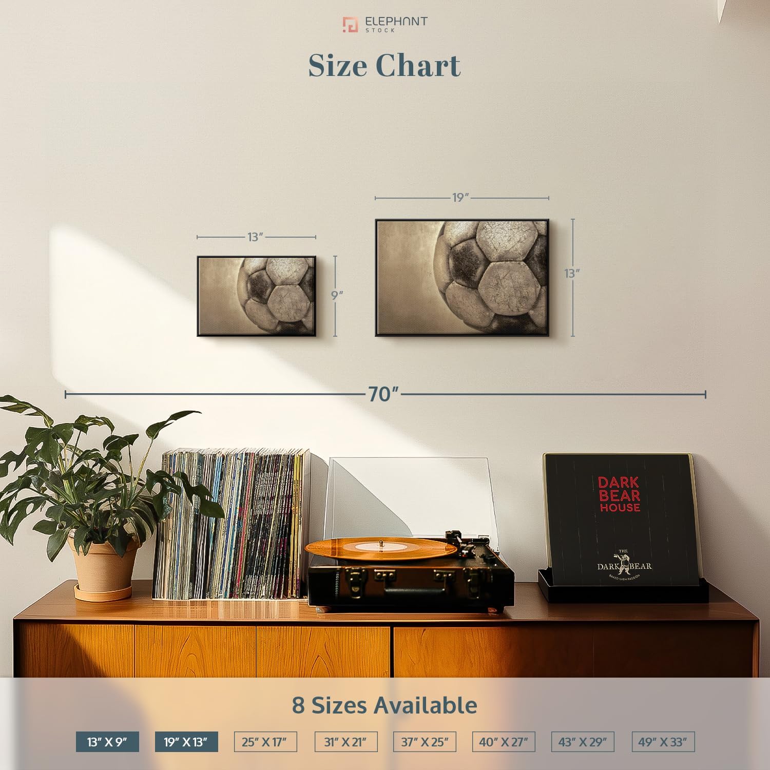 Elephant Stock Worn Soccer Ball Wall Art - Horizontal Framed Canvas - 1-Piece Living Room Wall Decor - Photography sports Canvas Print - Brown and Gray Decor for Wall - 19" X 13"
