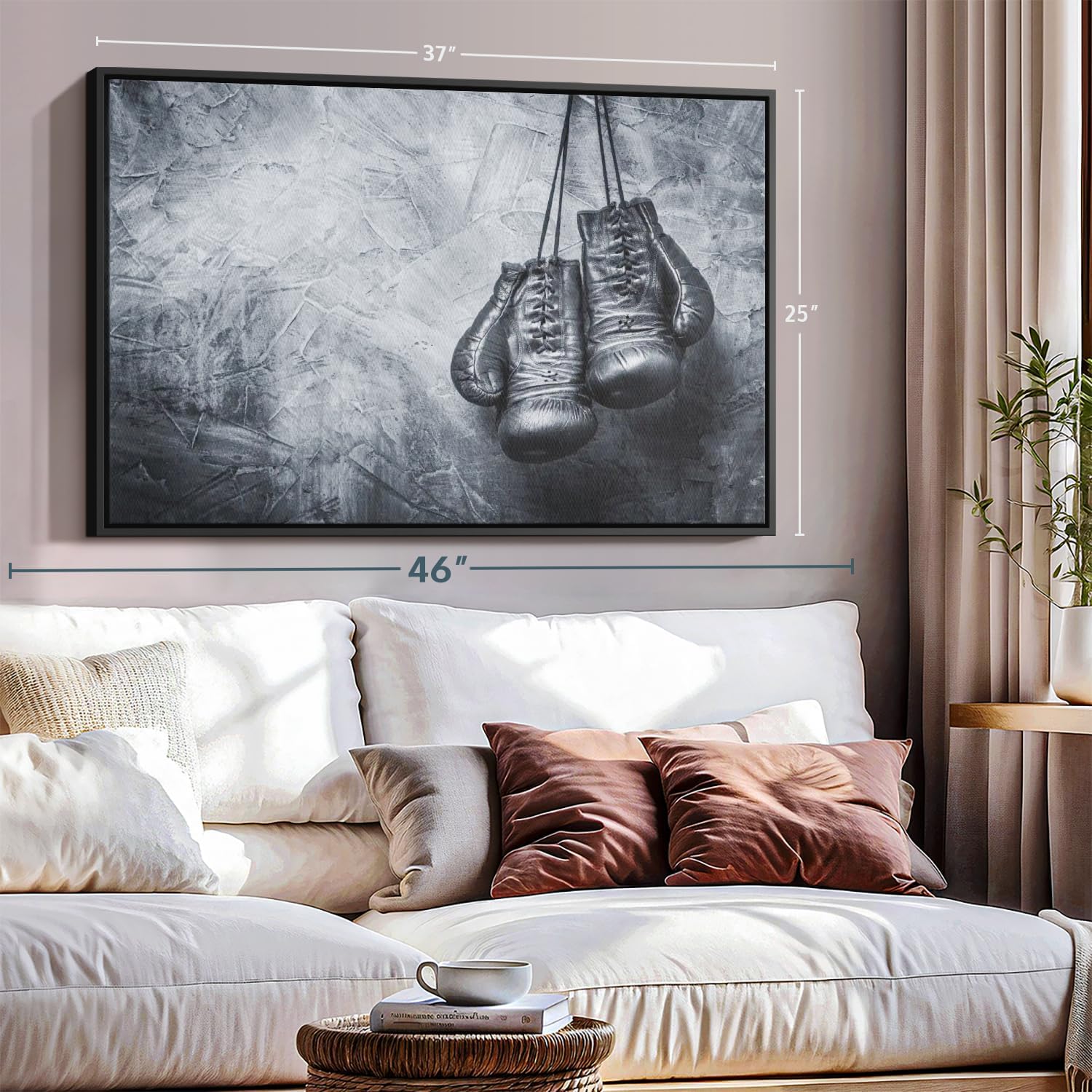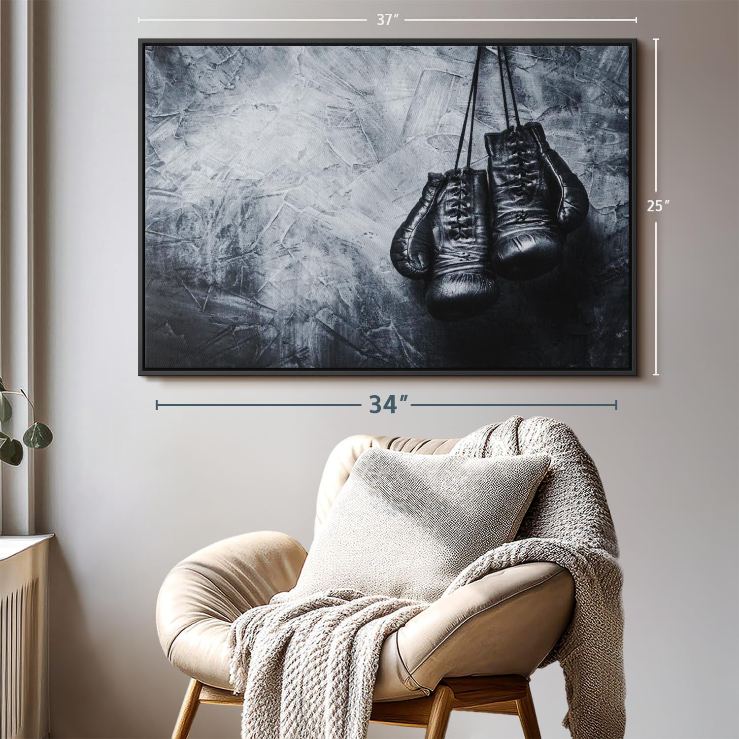 ElephantStock Boxing Gloves Wall Art - Horizontal Framed Canvas - 1-Piece Living Room Wall Decor - Photography Sports Canvas Print - Black and Gray Decor for Wall - 37" X 25"