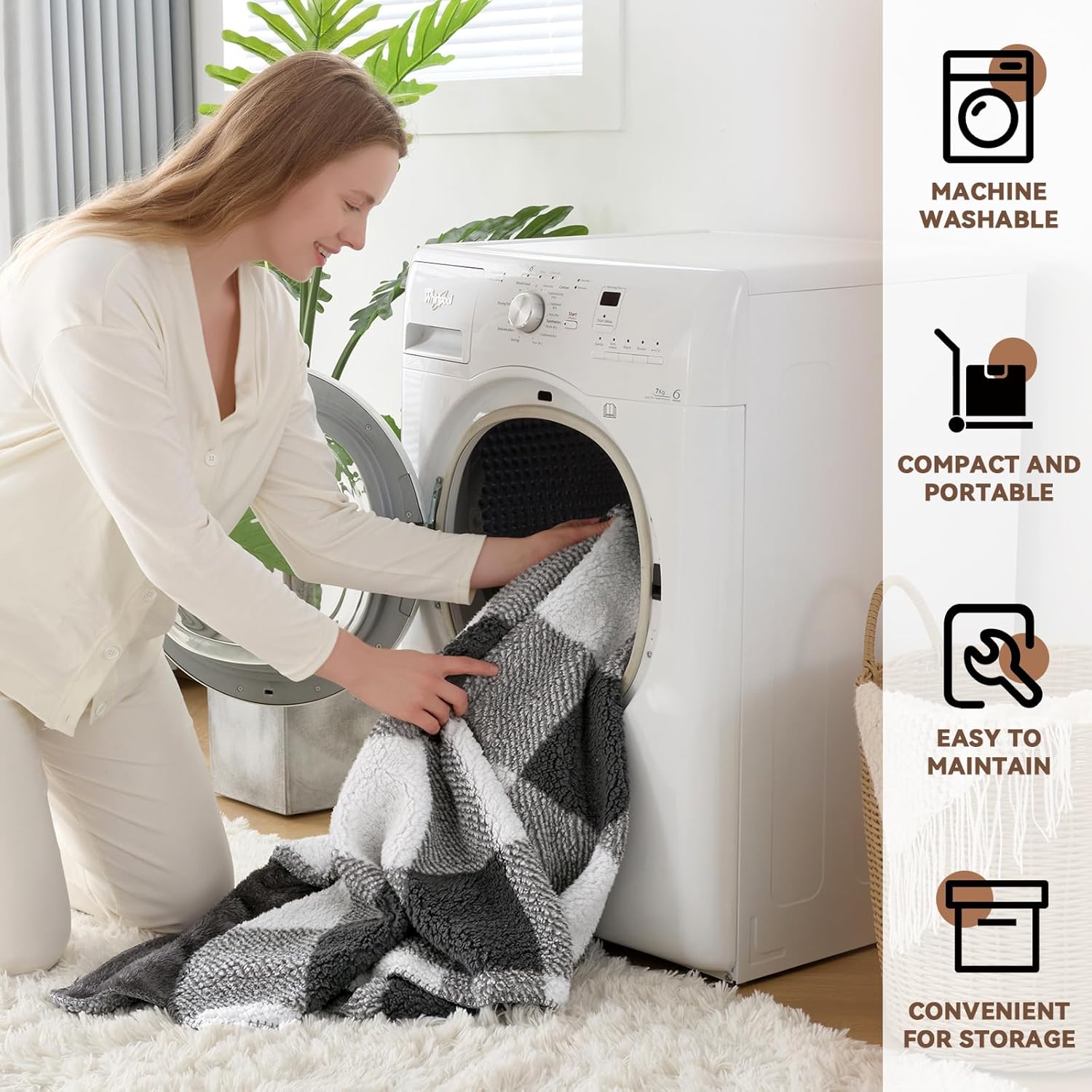 LURKA Checkered Sherpa Fleece Throw Blanket - Extra Thick and Warm Winter Soft Fuzzy Plush Blanket for Couches, Beds & Pets, Smoke Grey, 50x60 Inches