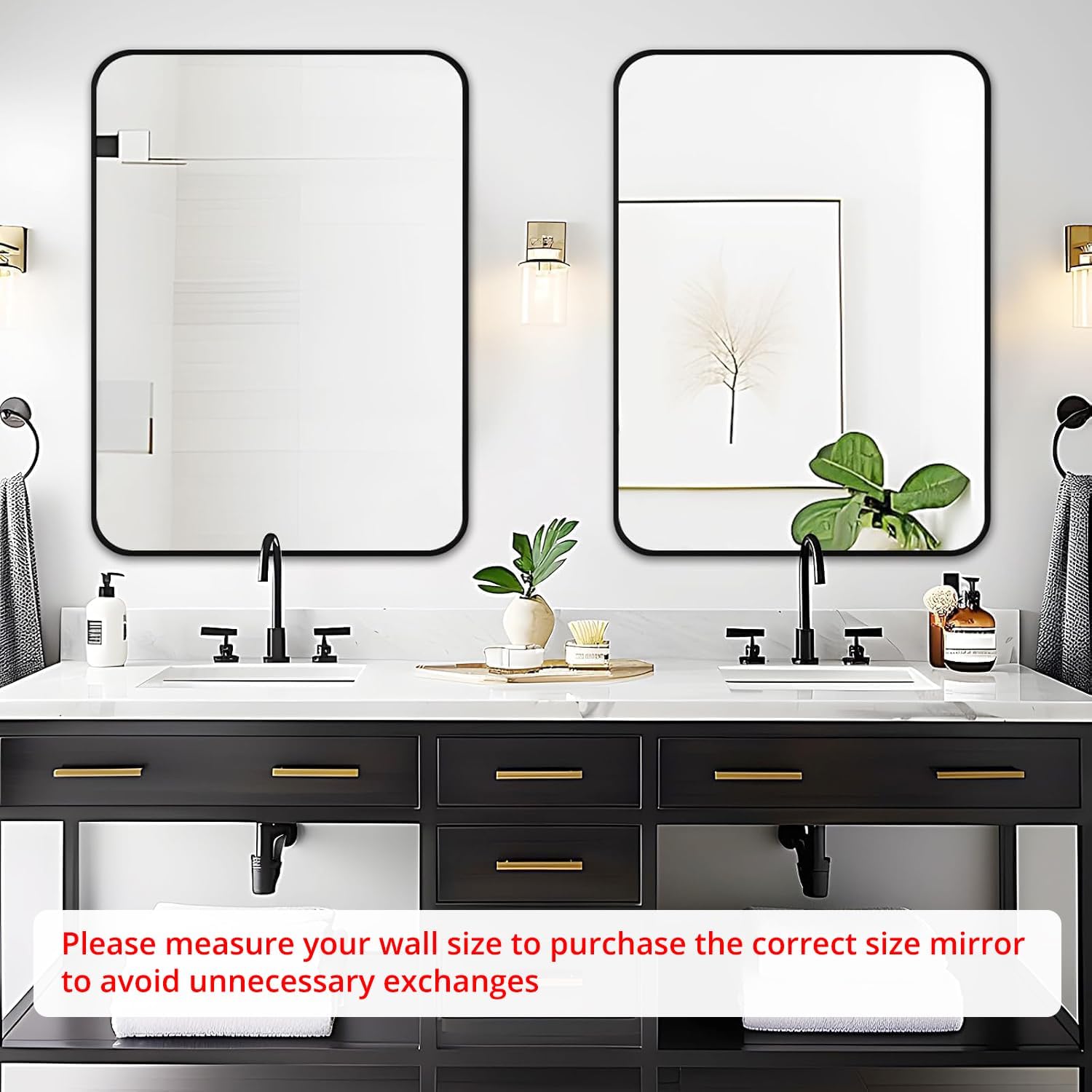 Fabuday Black Wall Mirror for Bathroom Over Sink - 22x30 Matte Metal Framed Rectangle Mirror, Rounded Rectangular Vanity Mirrors for Living Room, Bedroom, Entryway, Hallway, Horizontally/Vertically