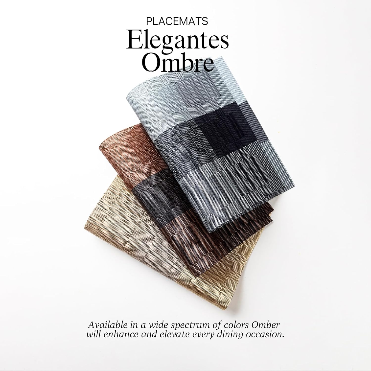 LEXMORE Placemats Set of 8 Vinyl/Plastic Woven Place Mats for Kitchen Table Indoor/Outdoor Washable Placemat Wipeable Dining Table Mats(E-Silver Gray Black)
