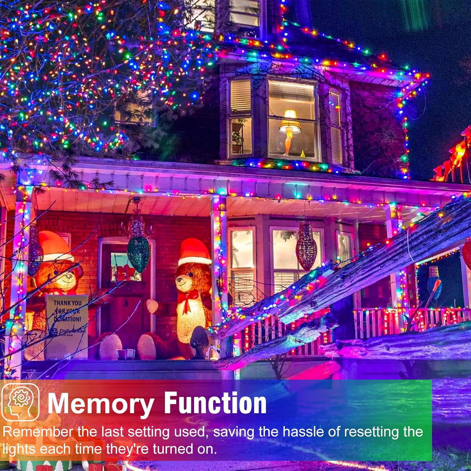 - Timer and Memory Function: Long press the button on the plug to activate timing function, 6 hours on and 18 hours off a day. Moreover, the built-in memory chip will intelligently remember your last settings without having to reset every time. Create a mesmerizing festive atmosphere for Christmas, Halloween, birthday, parties or weddings.