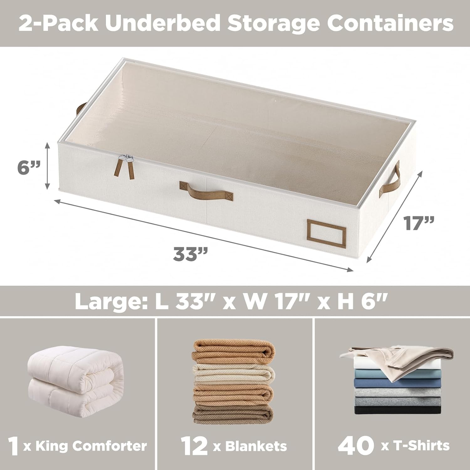 - 【Linen Fabric & Spacious Design】: Crafted from high-quality linen, our under bed storage containers with lid measures 33"L x 17"W x 6"H. These spacious under bed storage drawers are perfect for organizing your blankets, shoes, sheets, toys, pillows, coats, and other essentials, keeping them neatly tucked away under your bed.