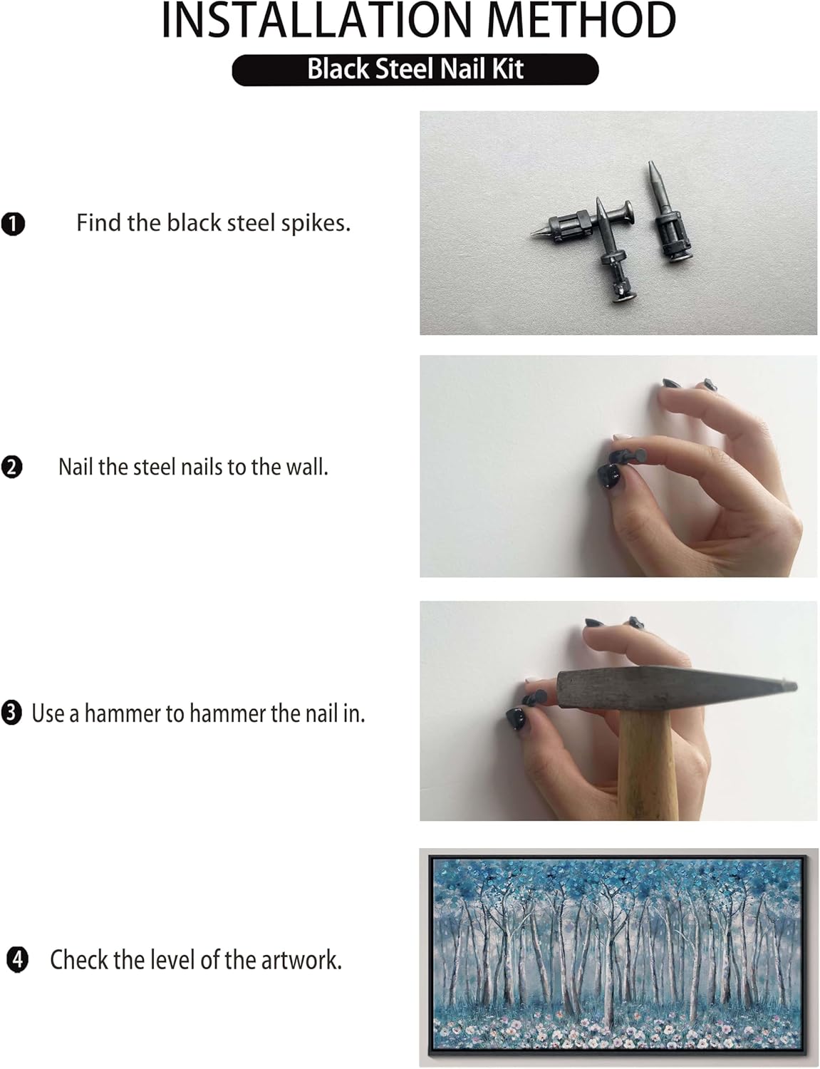 - Each panel comes with a convenient black hook for easy hanging. Make sure to measure your wall space properly and choose the right size for a perfect fit.