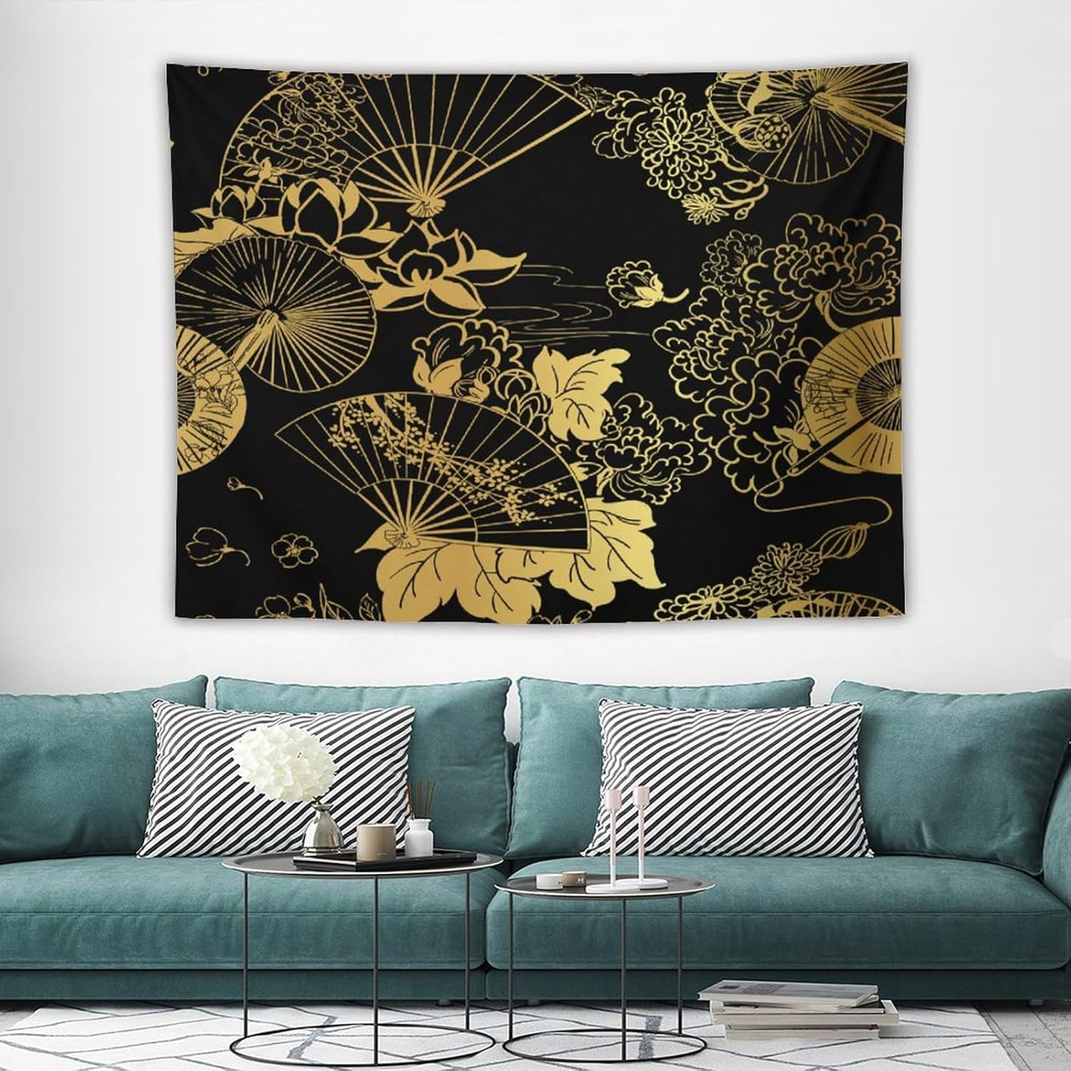 HZOHNAGO Japanese Tapestry Gold Flowers Umbrella Fan Pattern Printed Wall Tapestry Painting Wall Hanging for Bedroom Living Room Dorm 80" W x 60" H
