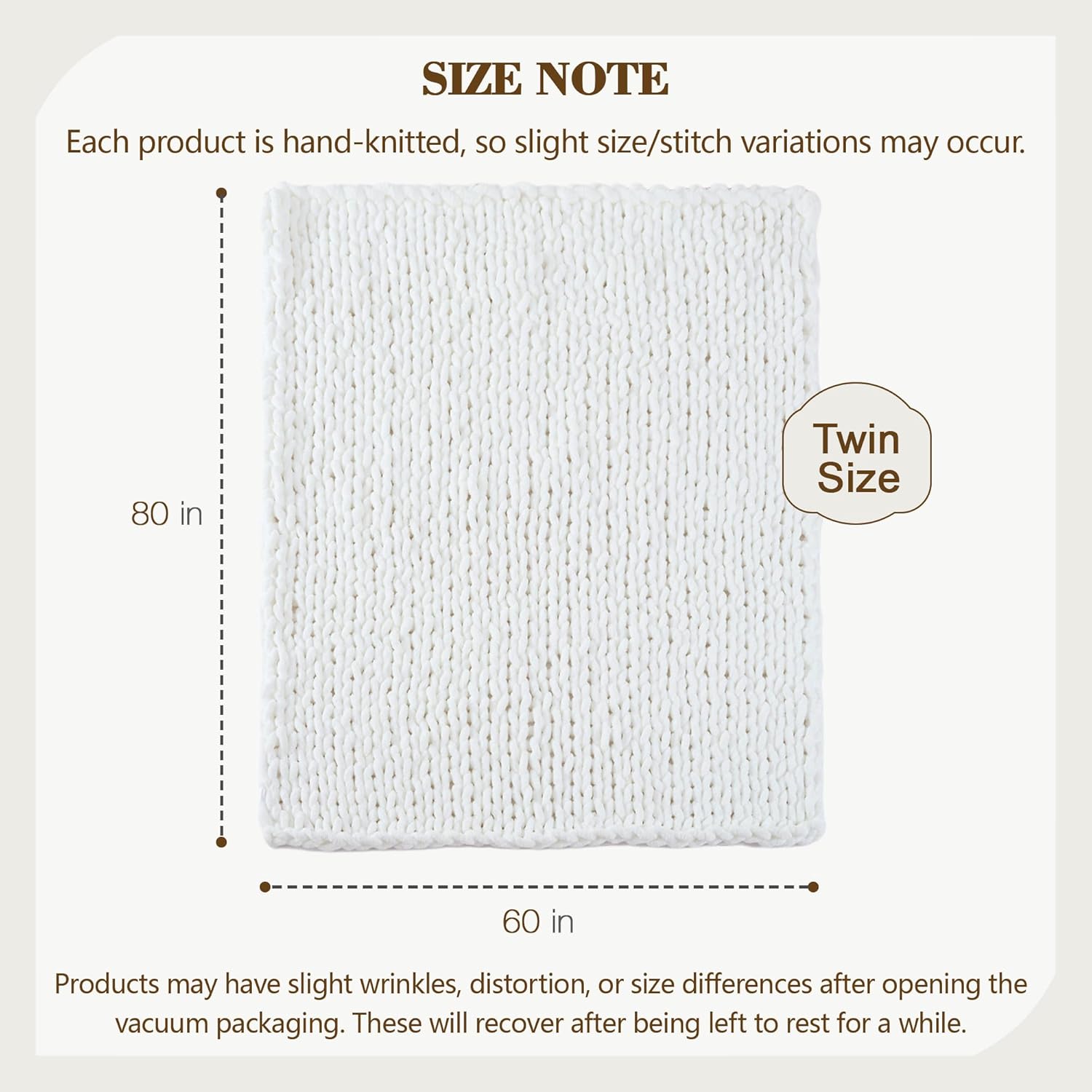Carriediosa Chunky Knit Throw Blanket 60" X 80" Twin, 100% Hand Made Large Chenille Loop Yarn Soft Fluffy Throws for Couch Sofa Bed, Big Crochet Cozy Heavy Thick Cable Woven Blankets, Snow White