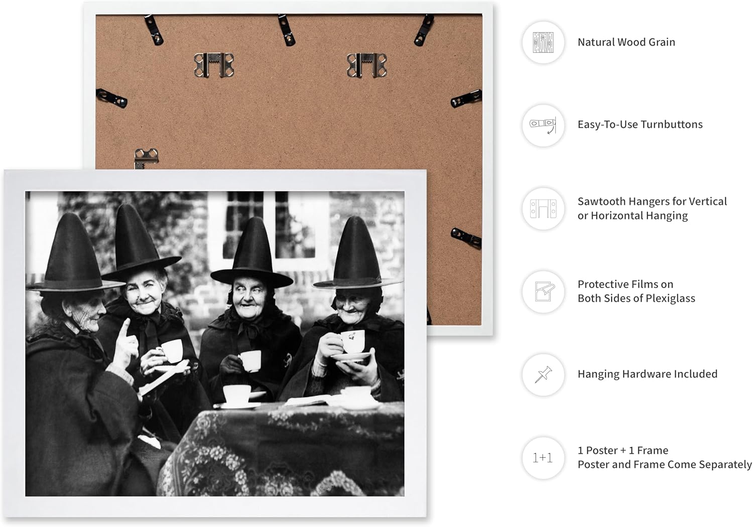 Poster Master Classic Photograph Poster - Vintage Halloween Print - Gift for Artist, Friend - Witches Tea Party, Old Women Smiling, Wearing Robes - Wall Decor for Living Room, 8x10 White Framed