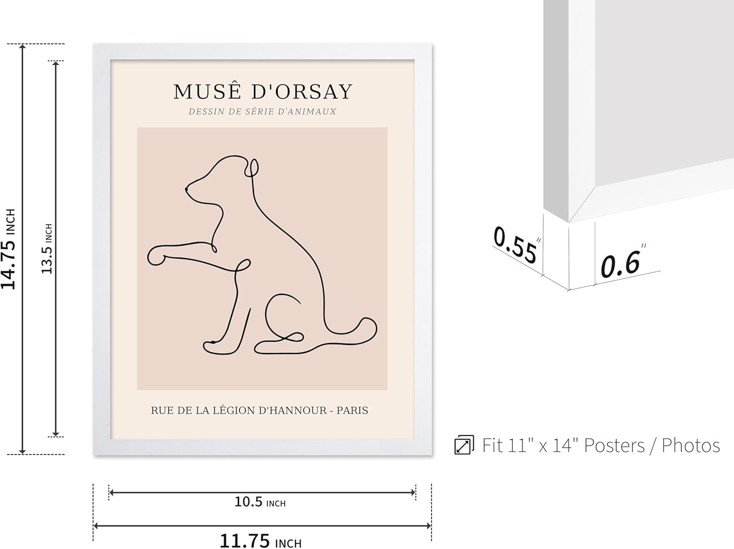 Poster Master Vintage Poster - Retro One Line Dog Drawing Print - Dog Art - Minimal Gift for Men, Women, Animal Lover - Abstract Wall Decor for Home, Office, Bedroom, 11x14 White Framed