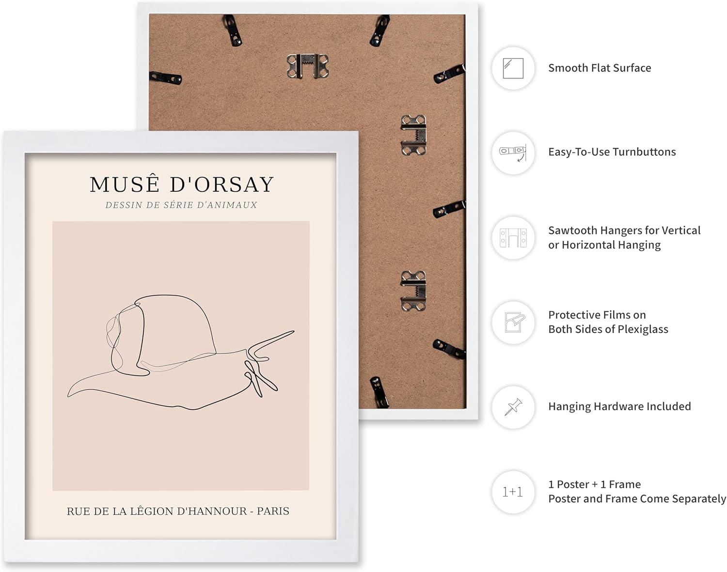Poster Master Vintage Poster - Retro One Line Snail Drawing Print - Snail Line Art - Minimal Gift for Men, Women, Animal Lover - Abstract Wall Decor for Home, Office, 8x10 White Framed