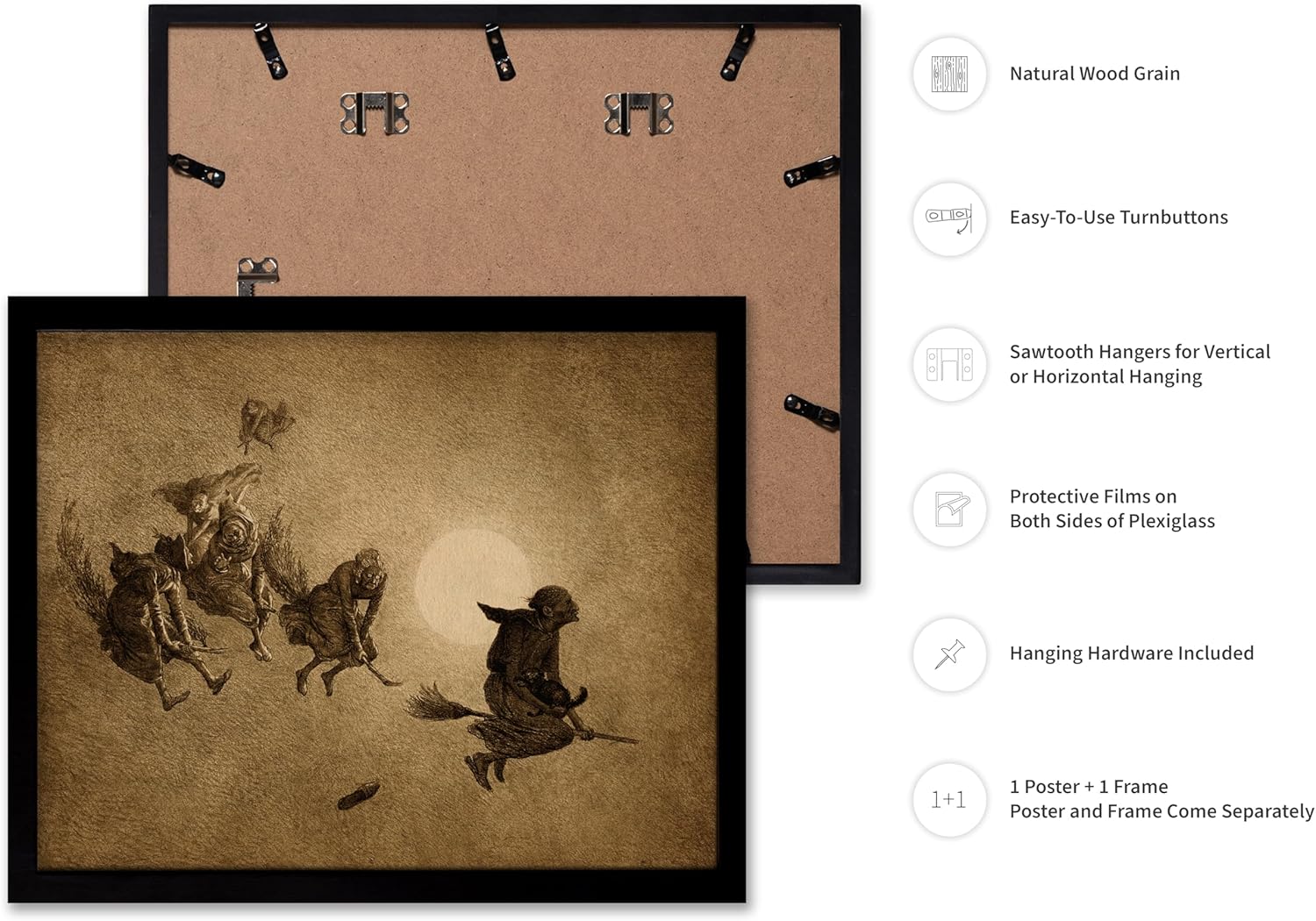 Poster Master Vintage William Holbrook Beard Poster - Retro Occult Print - Gift for Gothic, Horror Fan - The Witches Ride, Pagan, Goth, Magic - Wall Decor for Bedroom, Dorm, 16x20 Black Framed