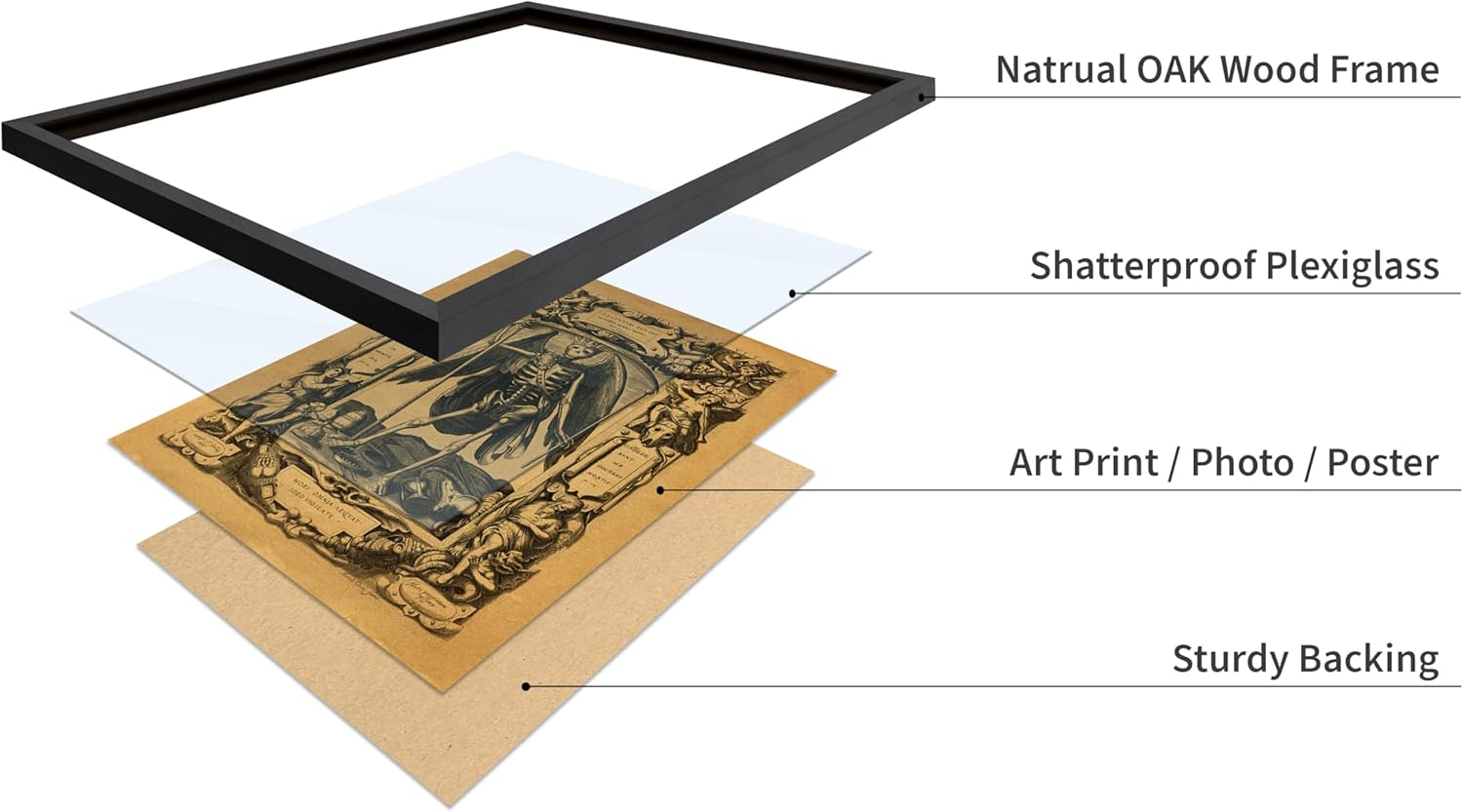 Poster Master Vintage Medieval Poster - Retro Gothic Print - Gift for Artist, Friend - Angel of Death, Memento Mori, Life, Skeleton, Dark - Wall Decor for Home, Living Room, 8x10 Black Framed