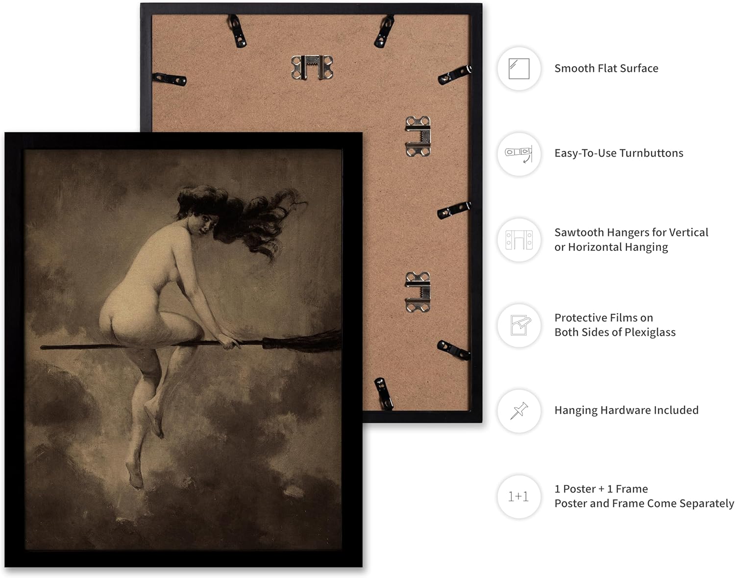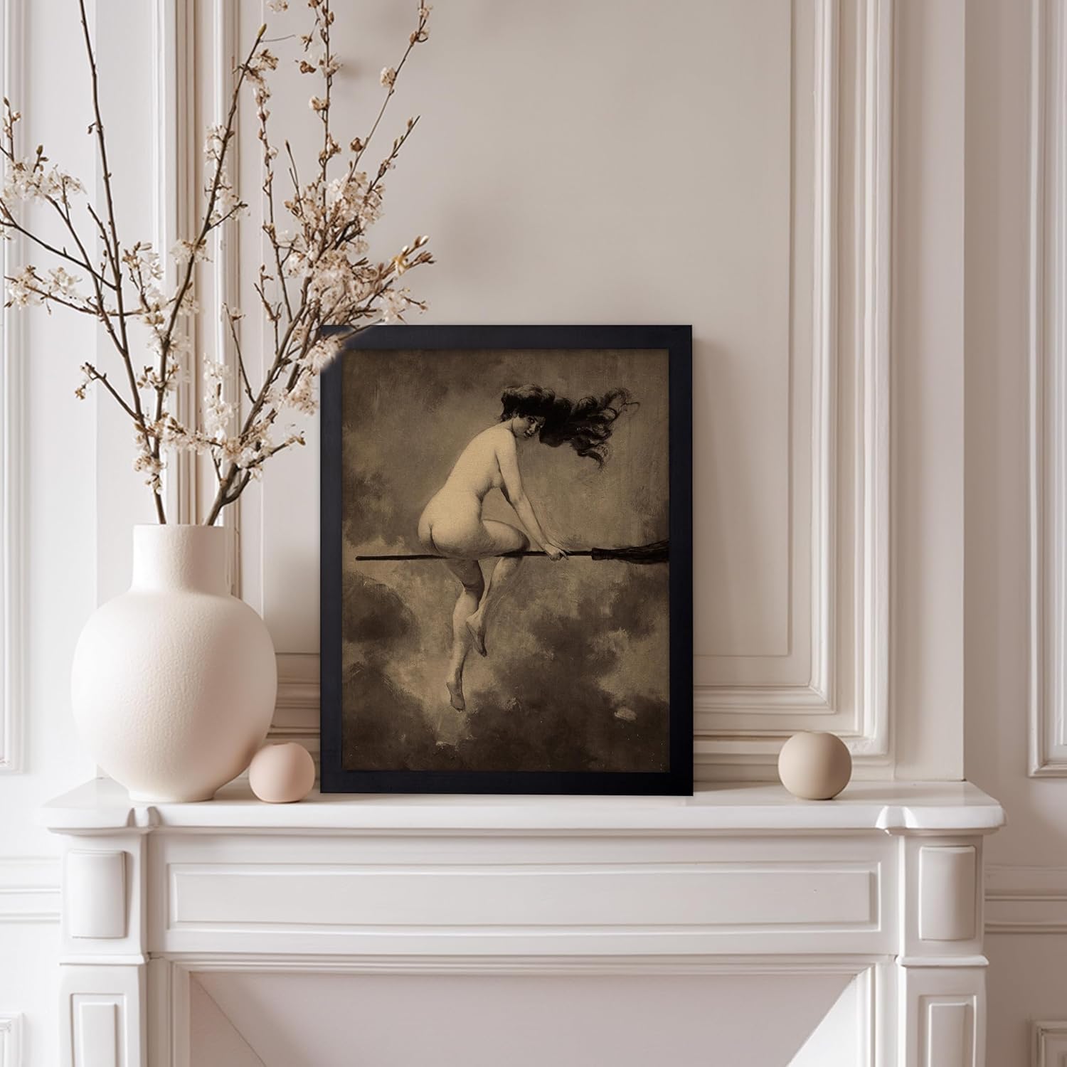 Poster Master Vintage Albert Joseph Penot Poster - Retro Halloween Print - Gift for Artist, Friend - Departure for the Sabbath, Naked Witch on Broom - Wall Decor for Bedroom, 11x14 Black Framed