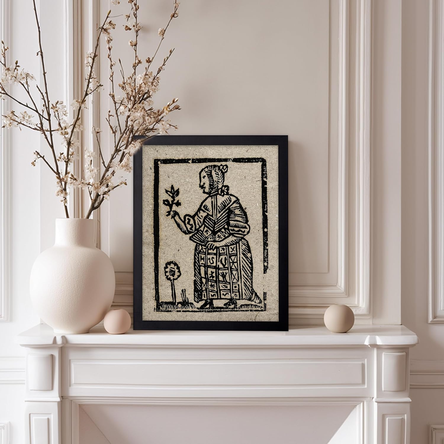 Poster Master Vintage Woodcut Poster - Retro Medieval Print - Gift for Gothic, Horror Fan - Witch Holding a Plant, Magic, Spell, Herbalist - Wall Decor for Bedroom, Dorm, 11x14 Black Framed