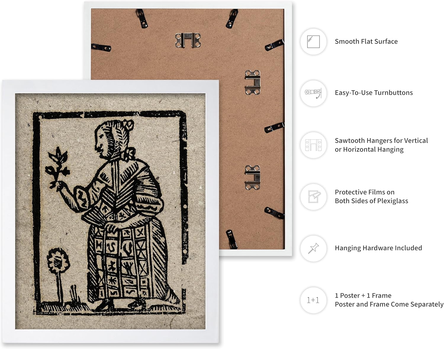Poster Master Vintage Woodcut Poster - Retro Medieval Print - Gift for Gothic, Horror Fan - Witch Holding a Plant, Magic, Spell, Herbalist - Wall Decor for Bedroom, Dorm, 16x20 White Framed