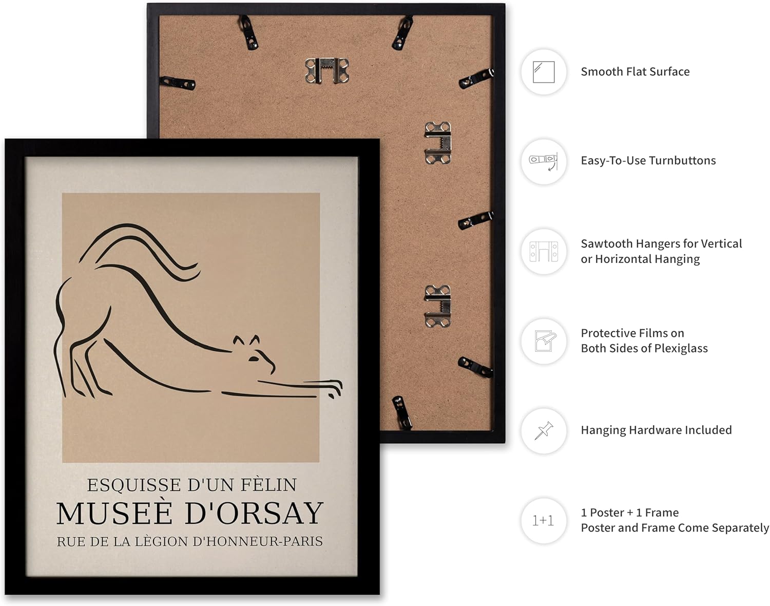 Poster Master Vintage Poster - Retro Minimalist Print - Gift for Artist, Housewarming - Cat, Line Drawing, Sketch, Abstract - Wall Decor for Living Room, Bedroom, 11x14 Black Framed