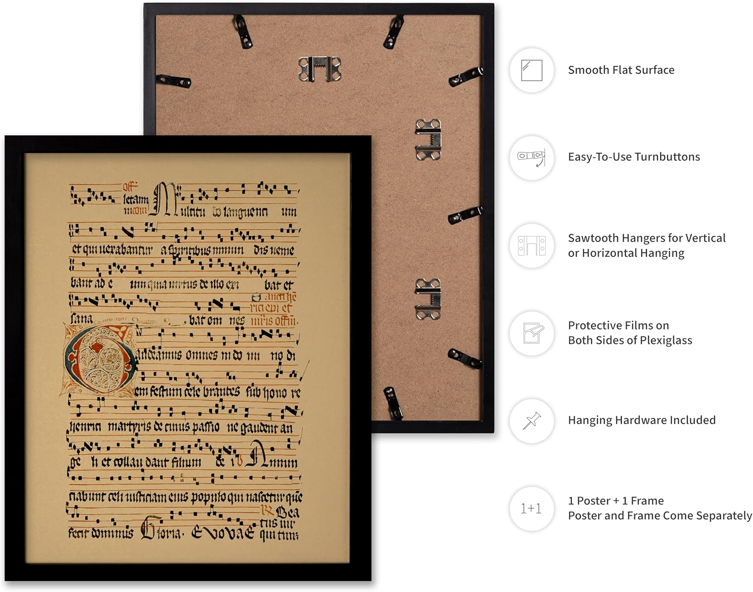 Poster Master Vintage Hymnal Poster - Retro Music Print - Gift for Artist, Friend - Graduale Aboense, Gregorian Chant Manuscript, Score - Wall Decor for Living Room, Bedroom, 16x20 Black Framed