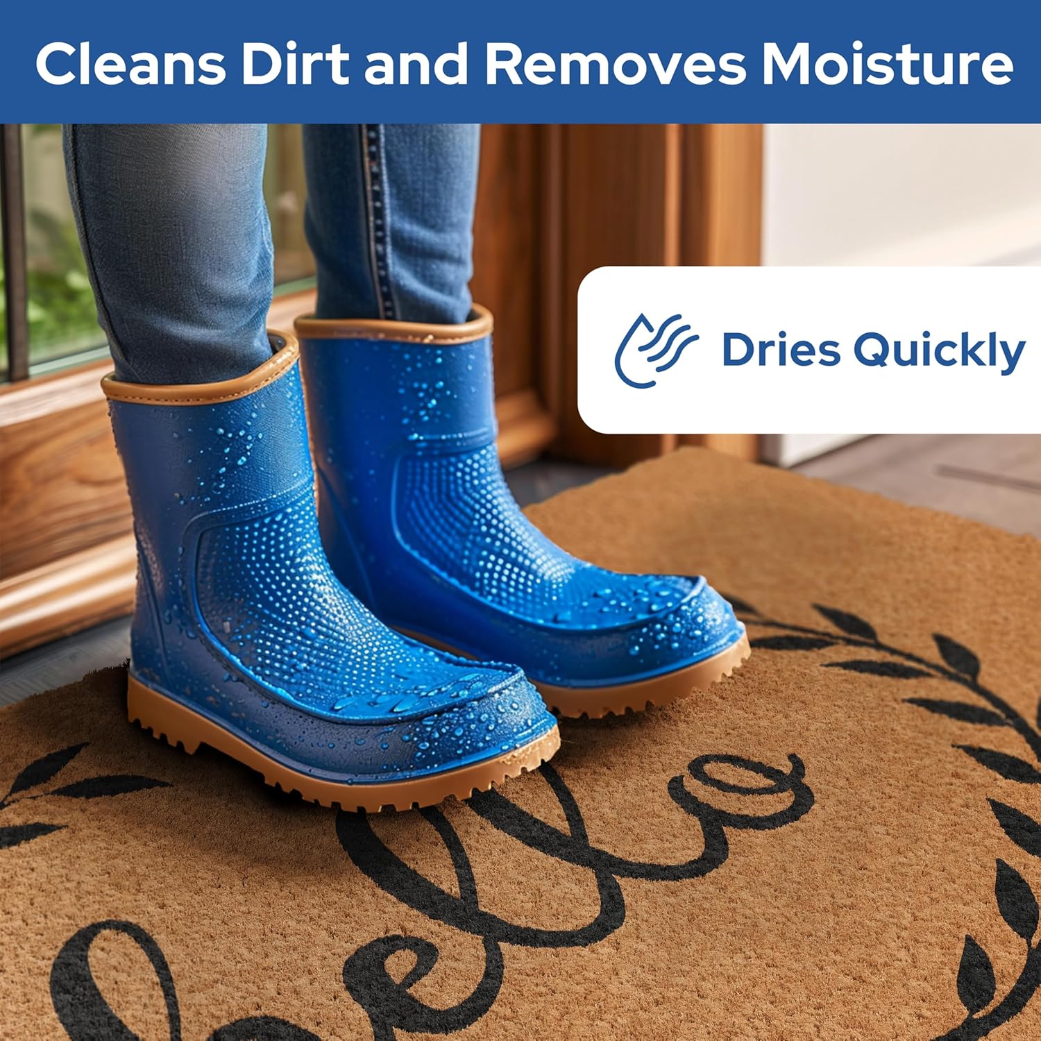 - Made of Durable Coir - Our doormats are made of 100% coconut coir fibers, one of the strongest and most durable natural fibers on earth. The high-quality coir used in its construction ensures that it will maintain its shape and appearance, even with heavy use. Please note that light shedding may occur, as is common with all natural coir mats. Additionally, avoid completely soaking mat with water as this could lead to natural coir runoff.