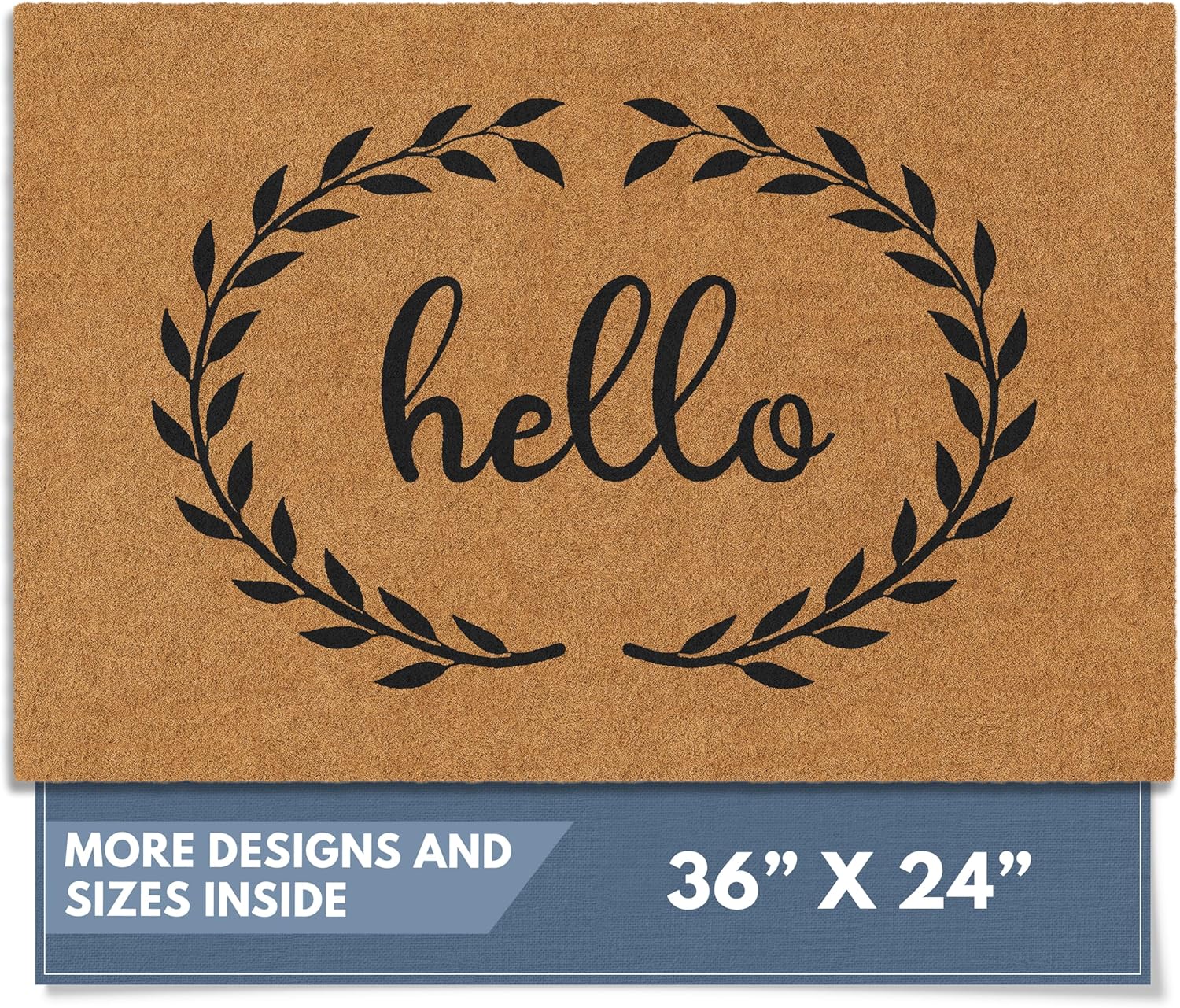 - Say Hello in Style - Welcome guests into your home with our eye-catching Hello Doormat with wreath detail; it’s the perfect indoor or outdoor welcome mat for front door. The doormat’s bold design and large lettering make it impossible to miss, adding a touch of charm to any entryway.