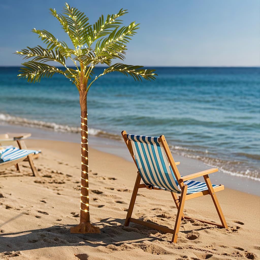 Birchlitland Lighted Palm Trees for Outside Patio 6FT 220 LED Fairy Lights, Artificial Palm Tree Lights Plug in for Home Pool Beach Decoration