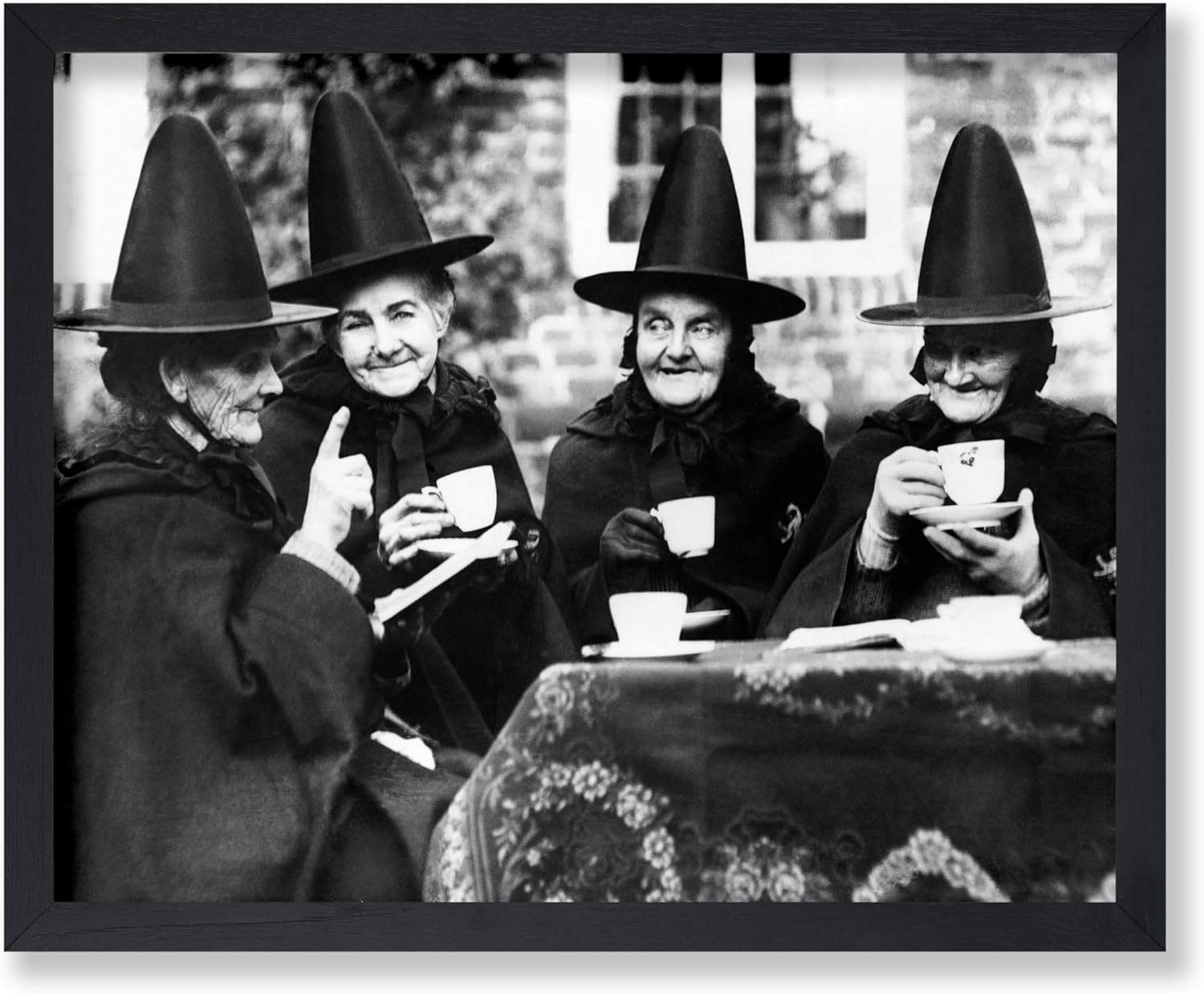 Poster Master Classic Photograph Poster - Vintage Halloween Print - Gift for Artist, Friend - Witches Tea Party, Old Women Smiling, Wearing Robes - Wall Decor for Living Room, 18x24 Unframed Wall Art