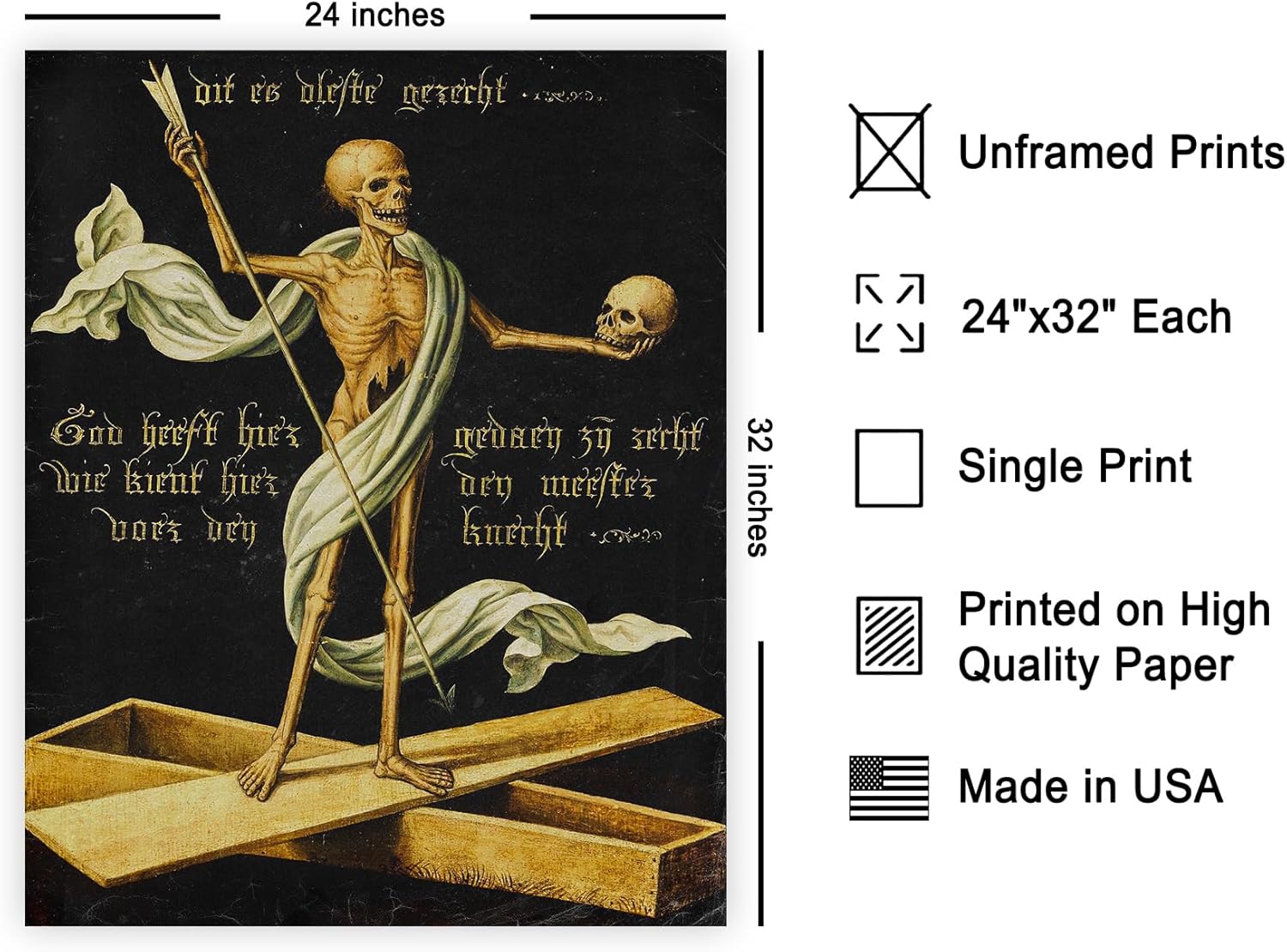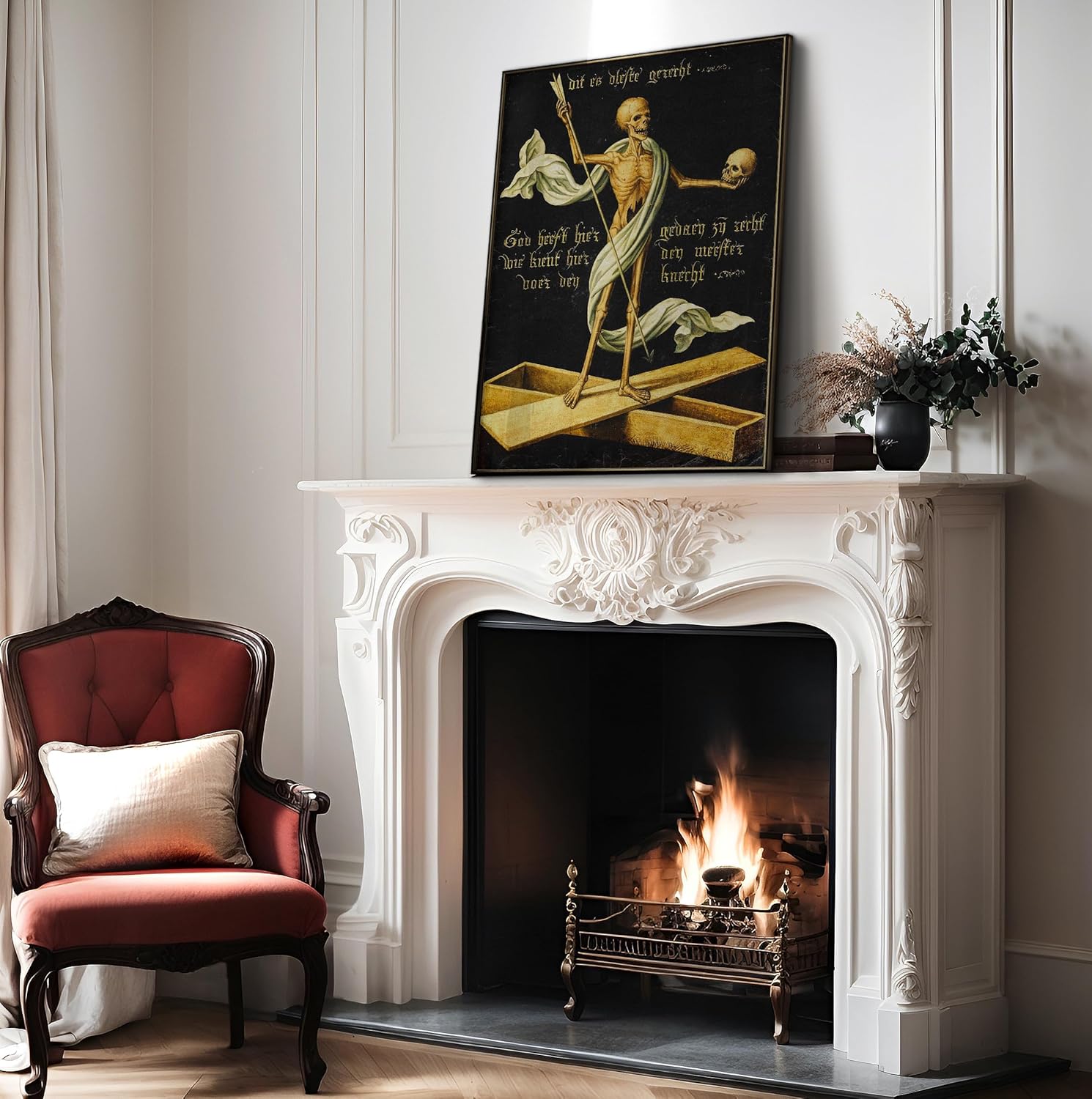 Poster Master Vintage Medieval Poster - Retro Gothic Print - Gift for Artist, Friend - Allegory of Life and Death, Skeleton, Dark, Skull - Wall Decor for Home, Living Room, 24x32 Unframed Wall Art