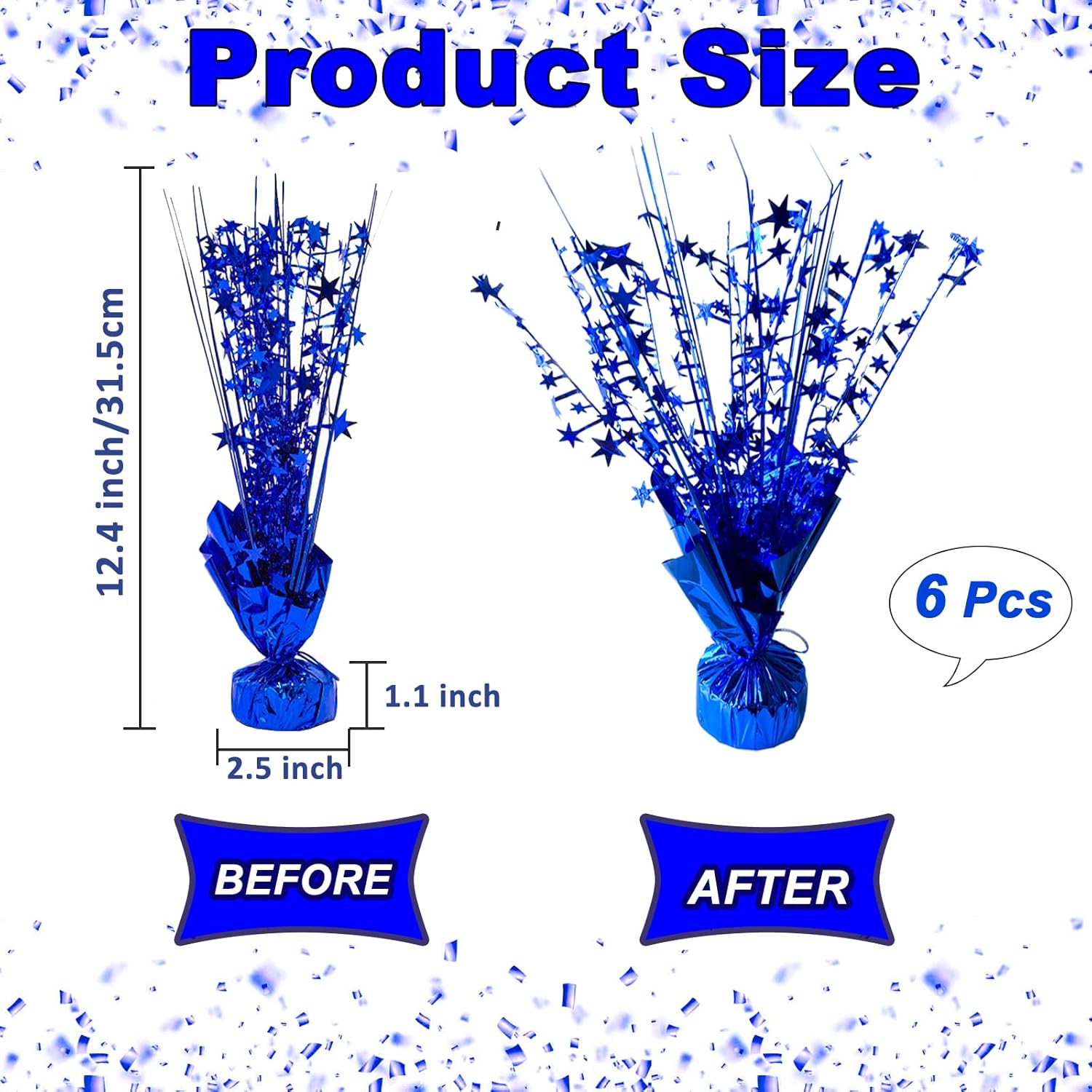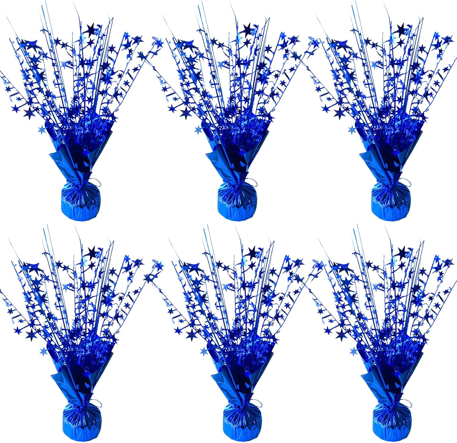 6 Pack Metallic Foil Spray Centerpiece Star Table Decoration Burst Table Centerpieces for Birthday Wedding Anniversary Graduation Holiday Party Supplies Decor, Blue