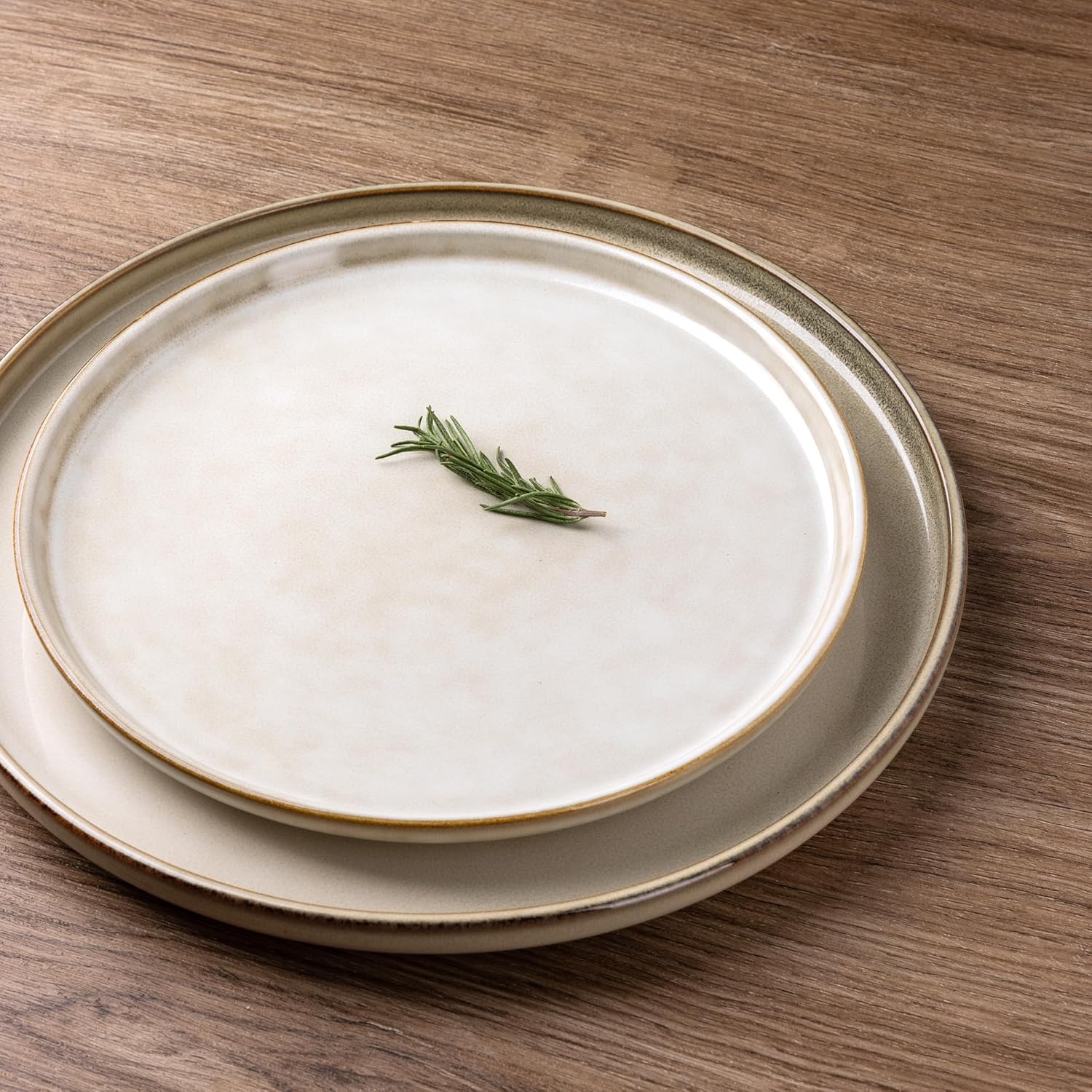 - MODERN&HUMANIZED DESIGN: these dinner plates set creates a gorgeous individual shape and minimalist table setting. these plates set also are wonderful because the slight ridge on the edge which keeps any sauces/condiments on the plate instead of going off the edge then you'll never have to worry about things like gravy or dressings from spilling over the sides