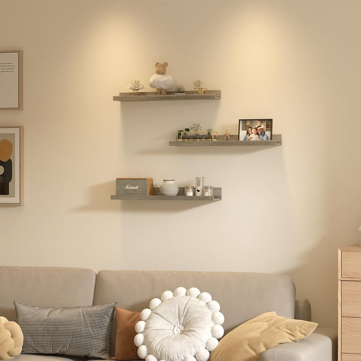 Giftgarden 24 Inch Grey Floating Shelves for Wall Mount, Gray Wood Wall Shelf Ledge for Bathroom Bedroom Living Room Kitchen Storage, Set of 3 Different Sizes