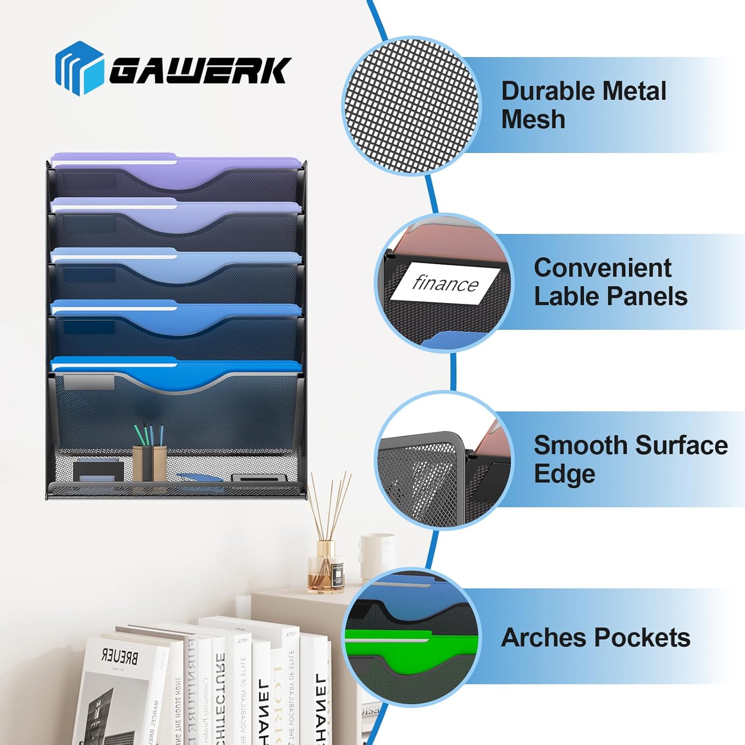 - ✏️ Sturdy Metal Structure: Wall file rack organizer is made of high-quality metal material with sturdy metal construction and durable powder-coated surface.