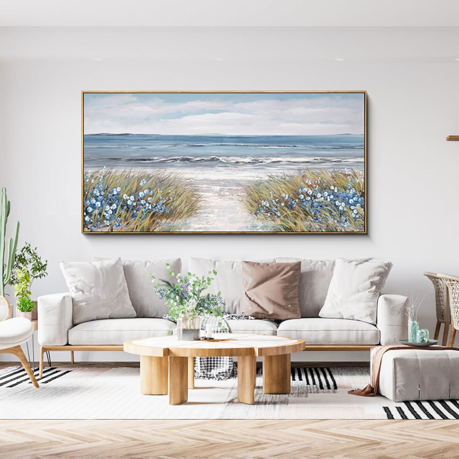 XLSJERST Framed Wall Art for Living Room Decor - Farmhouse Boho Beach Coastal Vintage Floral Ocean Wall Picture Flowers Sea Canvas Print Seascape Artwork for Home Living Room Bedroom Office 24x48