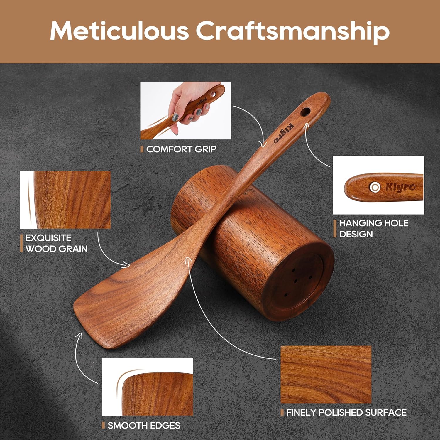 - PREMIUM WOOD โ Our kitchen utensils set are made from premium quality solid wood, which is known for its high density, strength and fine grain, ensuring that it won't crack or melt during use, while the natural richness of the wood grain enhances the aesthetics of the kitchen. (Natural wood may have color differences, which is normal.)