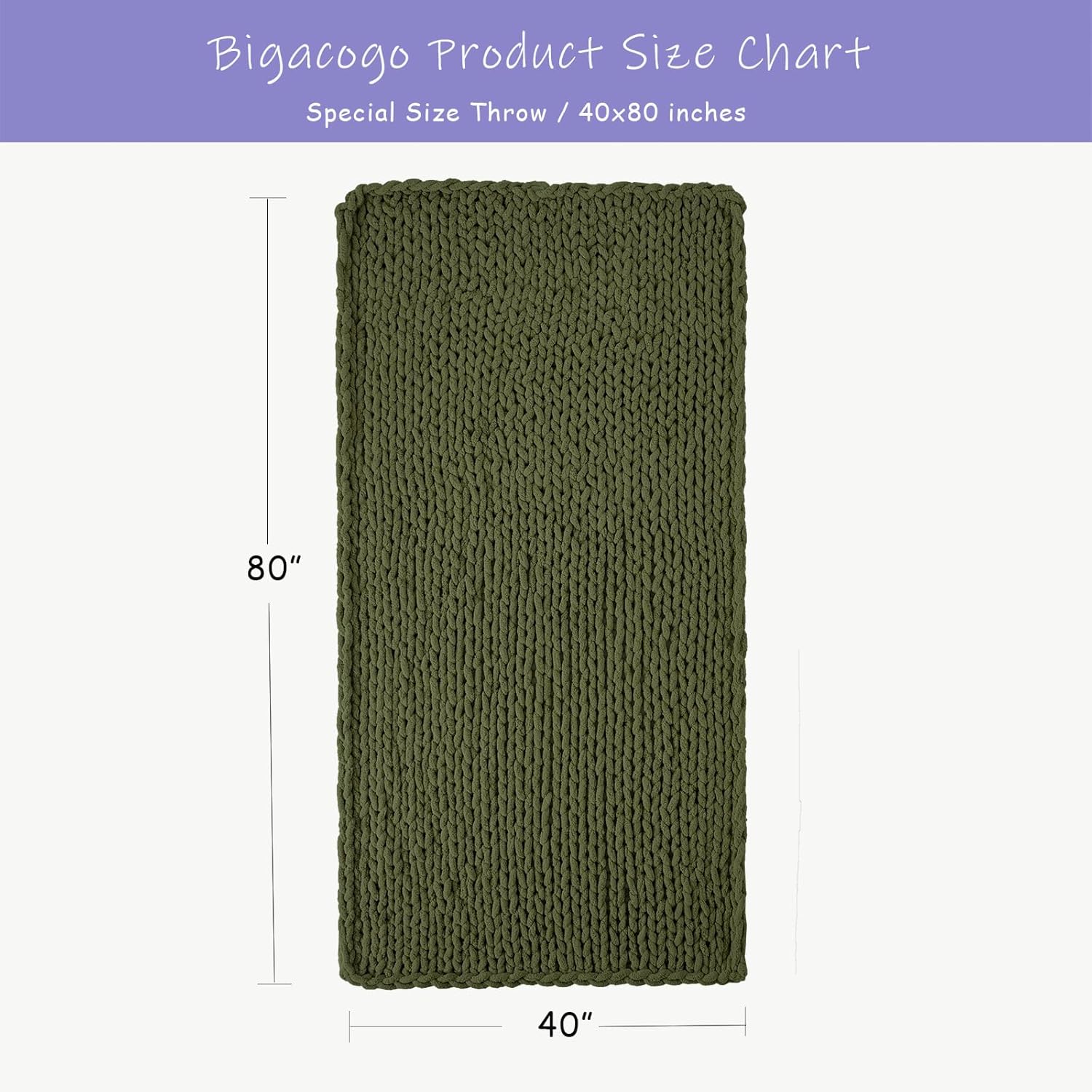 Bigacogo Chunky Knit Throw Blanket for Couch, 40x80 inches, 100% Hand Knitted with Thick Jumbo Chenille Yarn, Cozy Soft Large Rope Knot Cable Crochet Blankets for Sofa Bed Living Room, Yellow Green