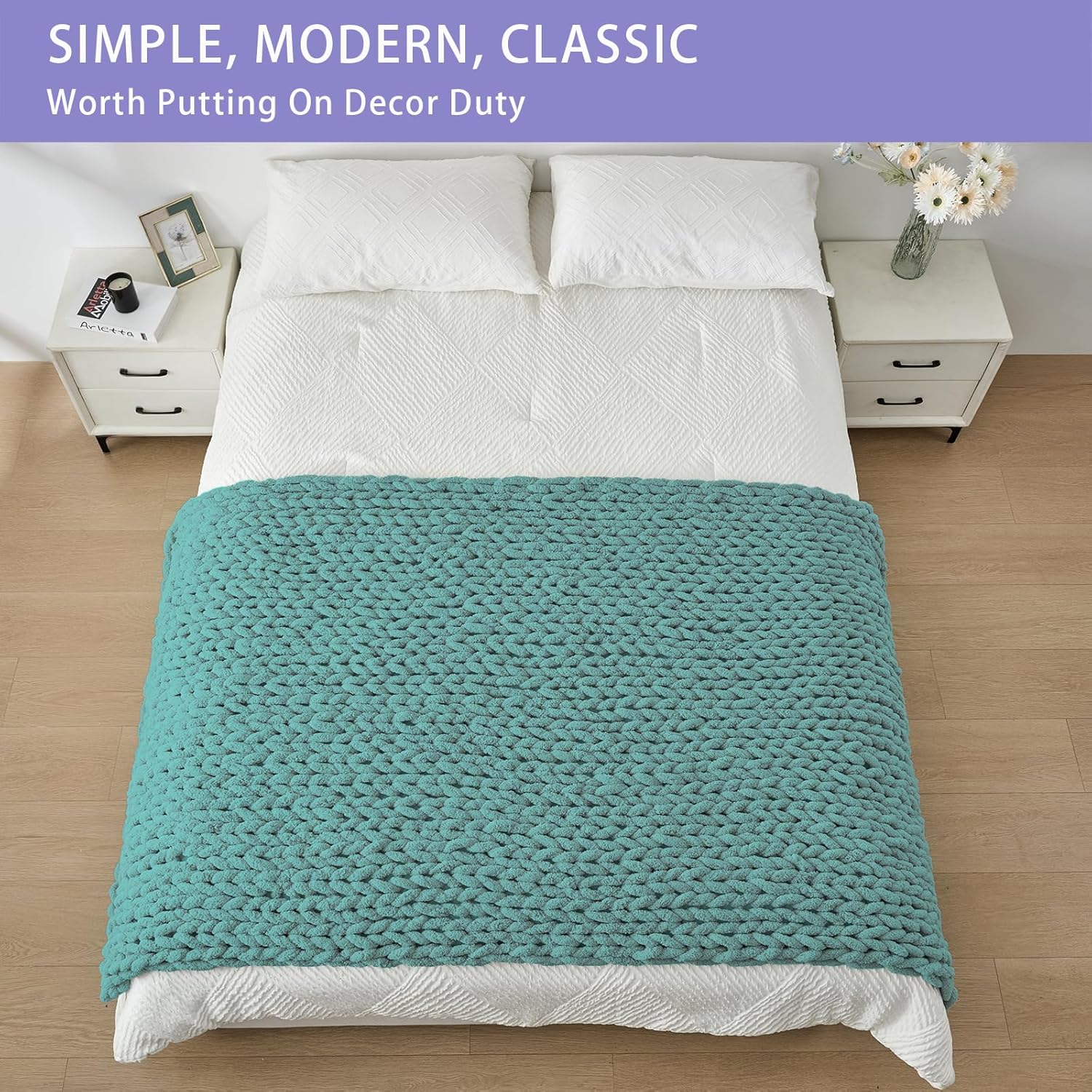 Bigacogo Chunky Knit Throw Blanket for Couch, 40x80 inches, 100% Hand Knitted with Thick Jumbo Chenille Yarn, Cozy Soft Large Rope Knot Cable Crochet Blankets for Sofa Bed Living Room, Light Teal