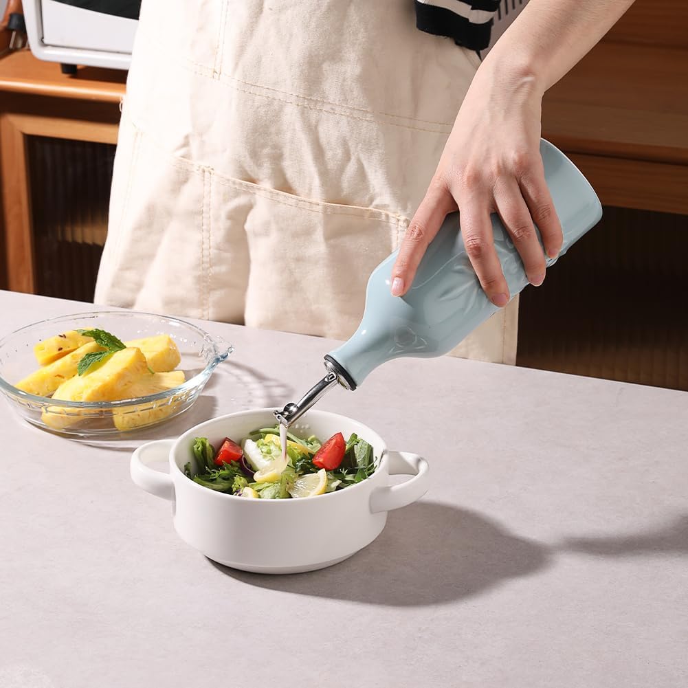 Sweejar Ceramic Olive Oil Dispenser Bottle, 20 Oz Relief Opaque Oil Cruet Protects Oil To Reduce Oxidation, Suitable for Storage Oil, Vinegar, Soy Sauce, Coffee Syrup, Liquids, Set of 1 (Light Blue)
