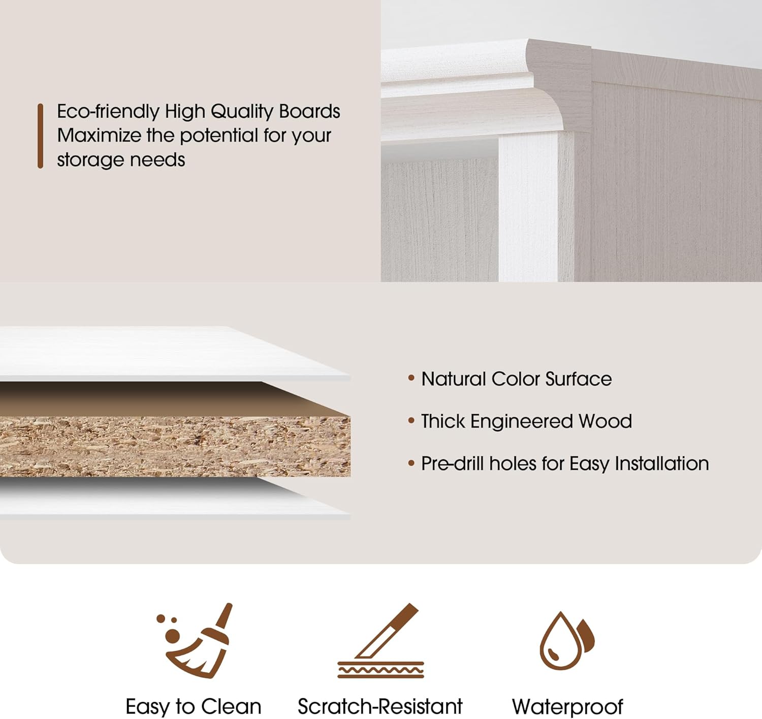 - Wood-like White: A white surface in wood-like pattern of a bookcase is beloved for most of home decor. It's so good to be both storage space and home decor indoor furniture.