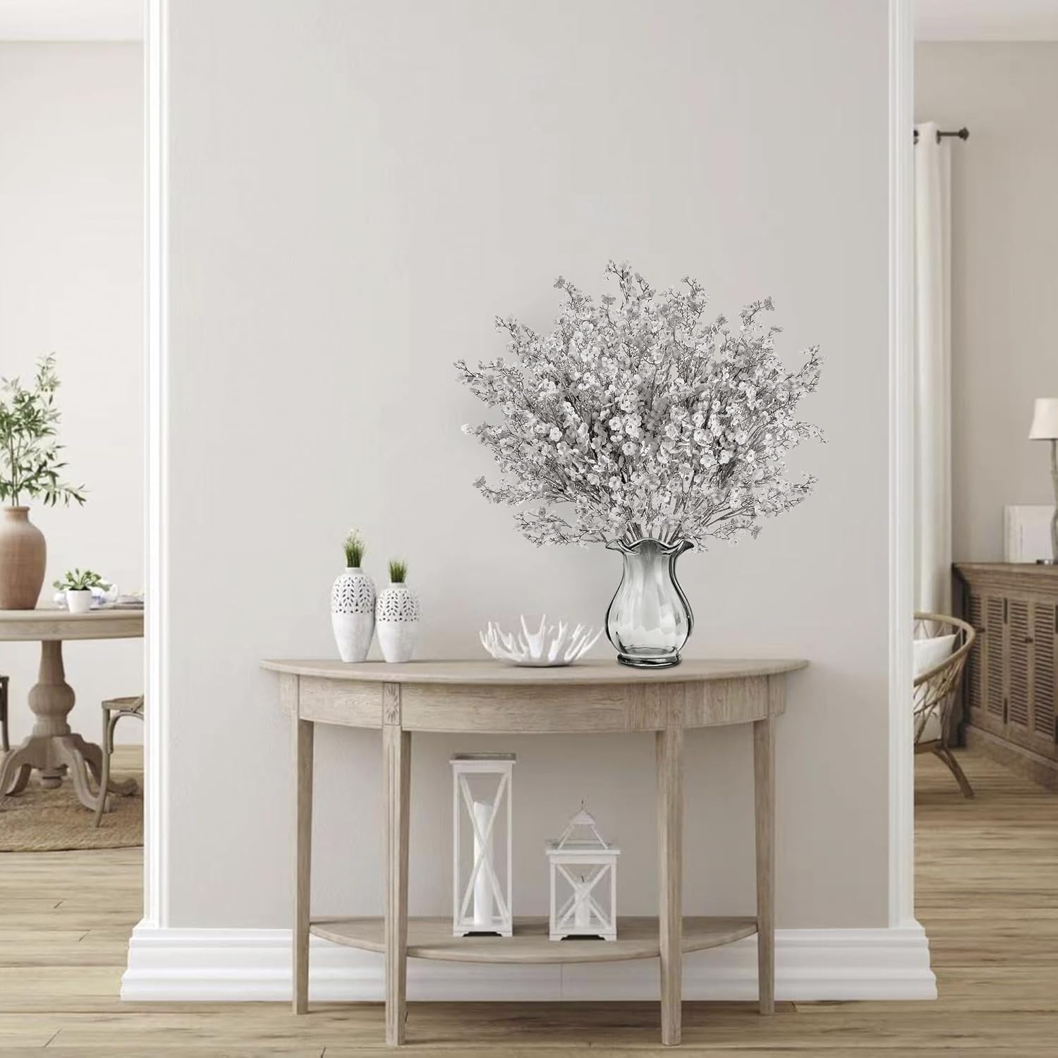 - [PREMIUM MATERIAL]: The babys breath artificial flowers are made of environmentally friendly plastic and silk, wire wrapped with plastics is used for firmness and angle-adjustable in creating the stems.