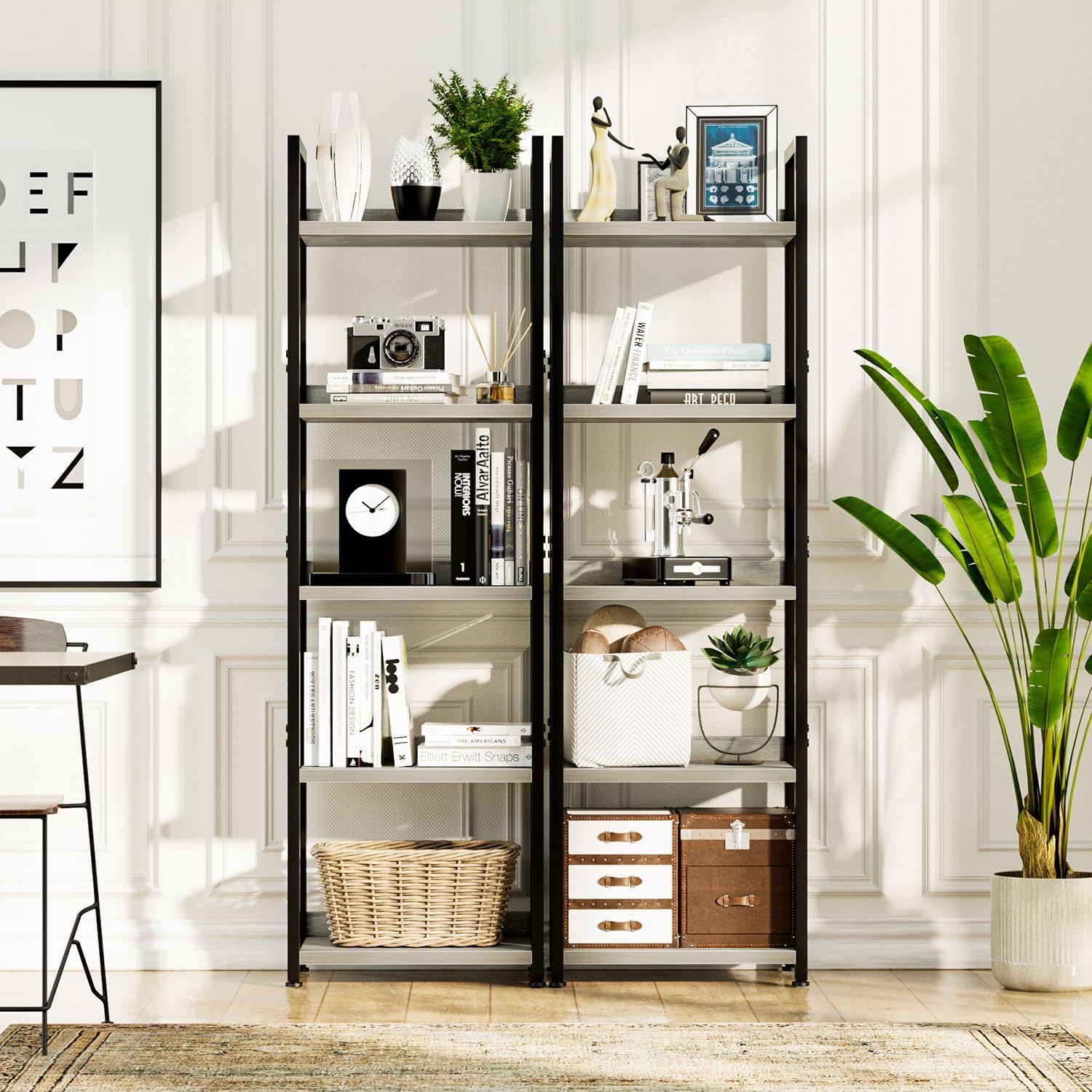 NUMENN Narrow Bookshelf, 5 Tier Bookshelves, Home Office Bookcase Shelf Storage Organizer, Free Standing Storage Shelving Unit for Bedroom, Living Room and Home Office, Grey