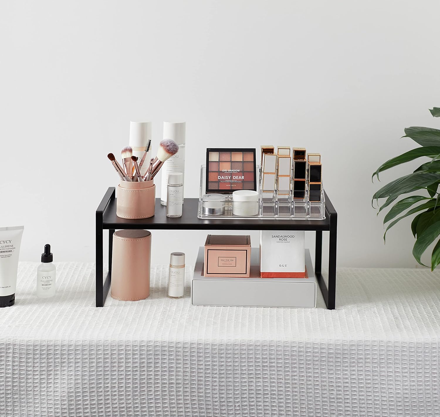 Nxconsu 2Pack Cabinet Shelves Stackable Shelf Organizer Rack Riser for Kitchen Cabinet Pantry Cupboard Counter Countertop Home Organization Storage Space Saver Heavy Duty Metal Nonslip Black Wide