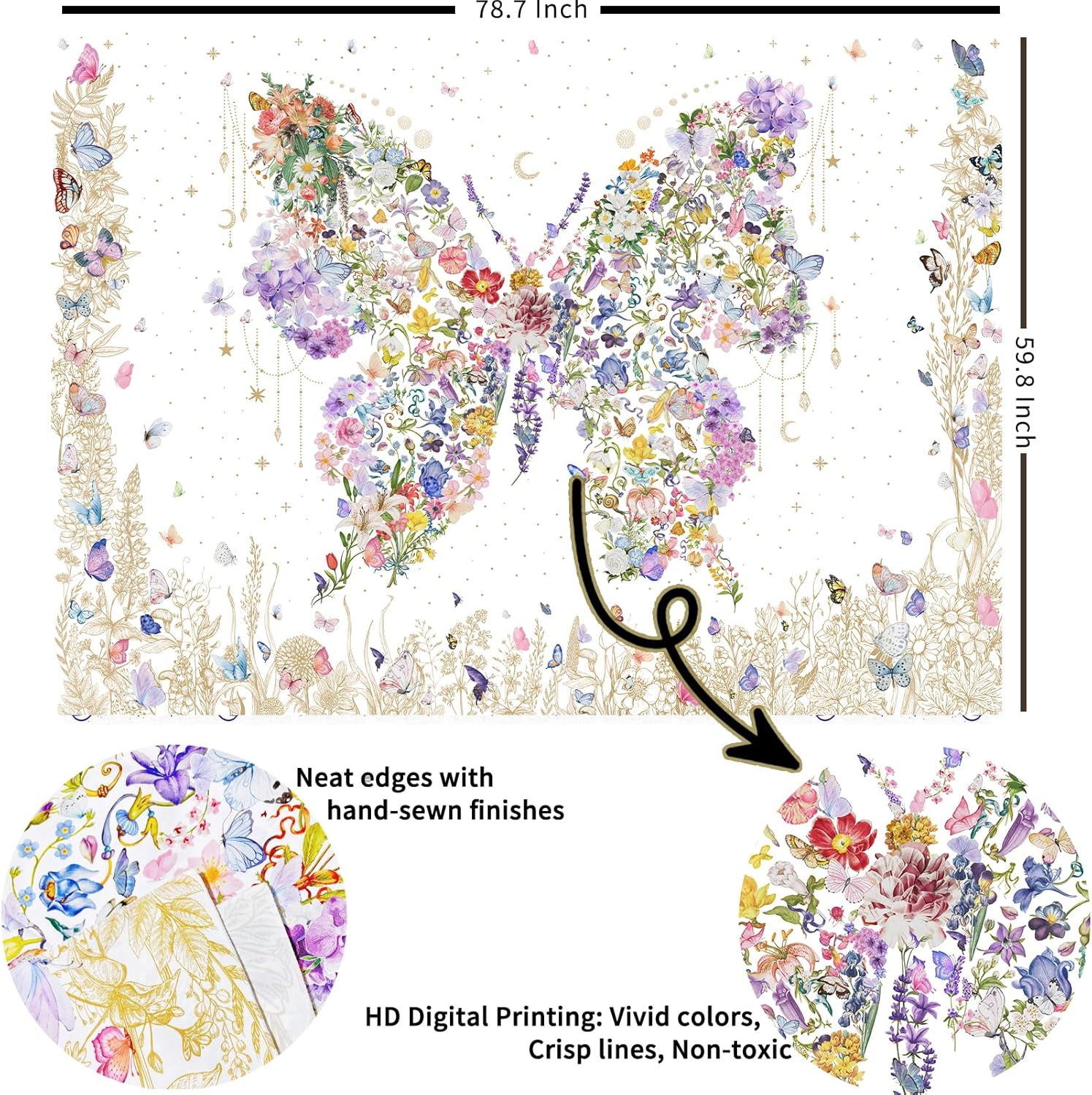 - Unique Design:This butterfly tapestry features a hand drawn design and adopts advanced HD print,vivid colors,Clear lines and delicate hemming. Instantly change the vibe of your bedroom with our stunning bohemian tapestry, perfect for creating a unique, eclectic atmosphere in your home