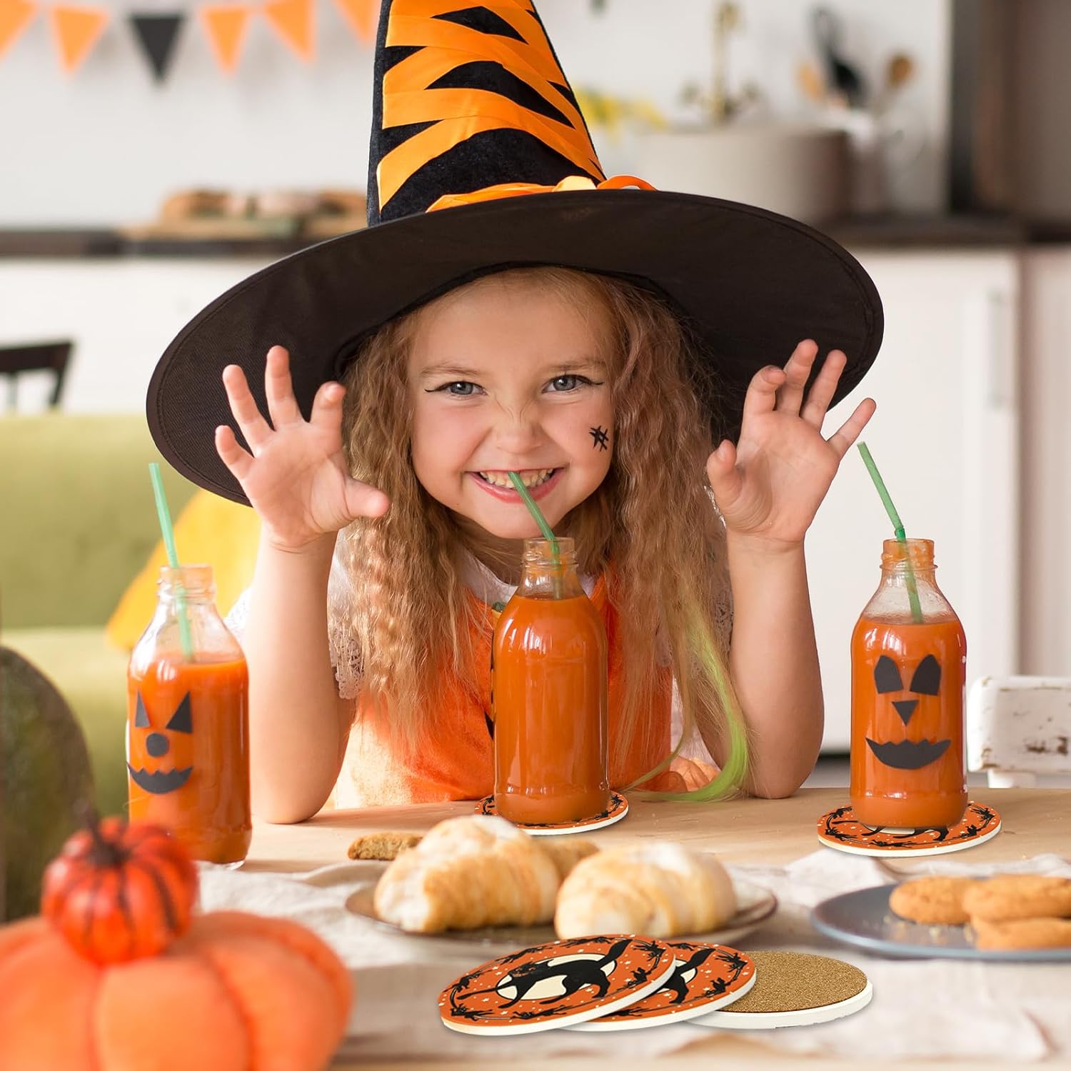 - PACKAGE INCLUDES: 4pcs Halloween ceramic coasters in same design are in the set, sufficient to meet home and party needs.